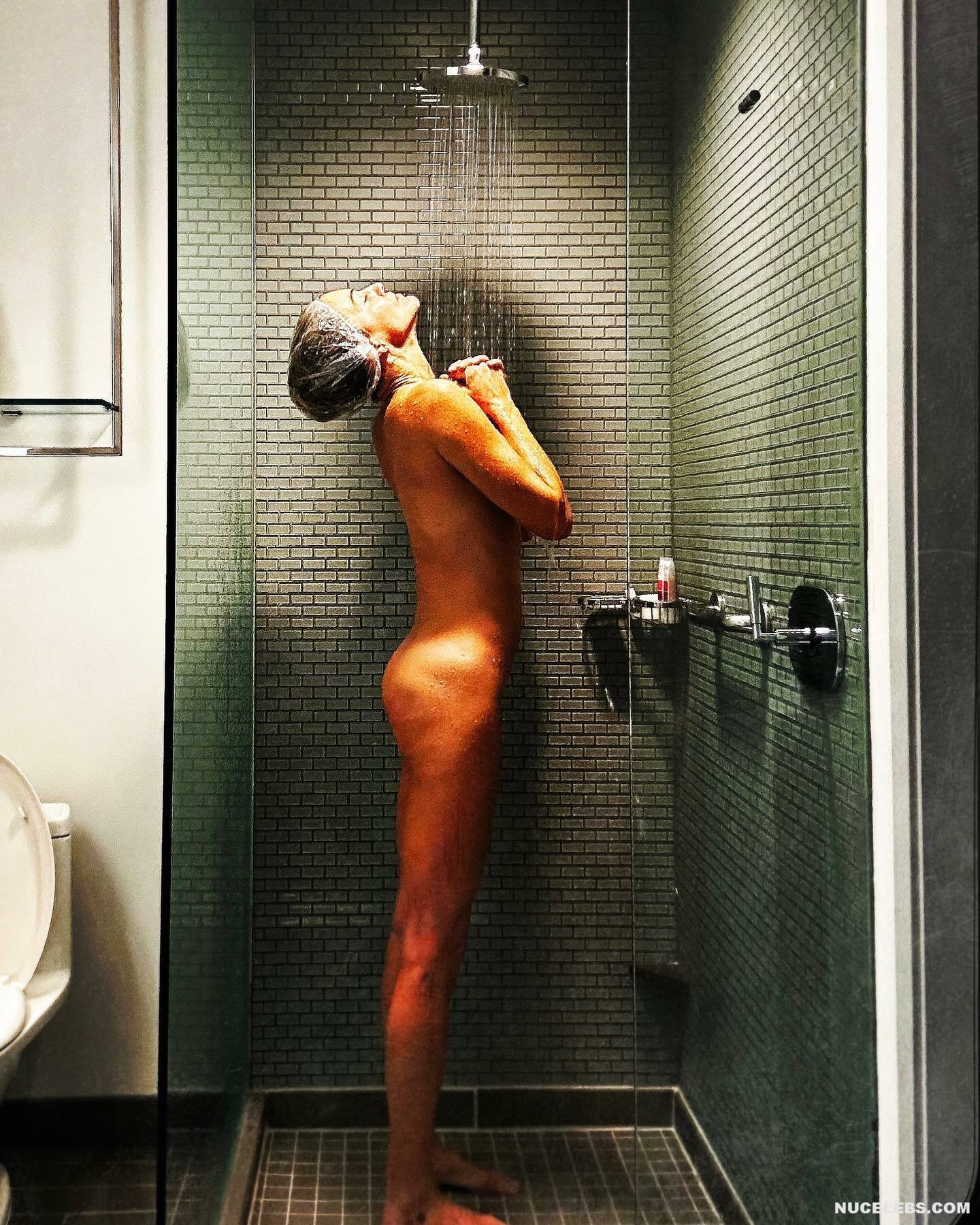 You’ll be entranced when you take a look at Tricia Helfer nude shower pics. While this actress in a transparent cap exposed her face to the shower, you could admire her naked body. Tricia Helfer nude small ass was visible, but her tits this time were hidden behind her raised arms. This celebrity also felt at ease when she walked around the garden topless, wearing a miniature thong. And of course check out her hot bikini photos!