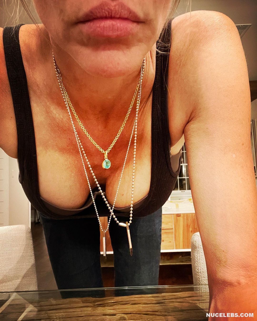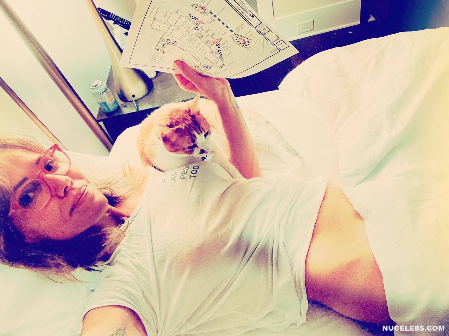 You’ll be entranced when you take a look at Tricia Helfer nude shower pics. While this actress in a transparent cap exposed her face to the shower, you could admire her naked body. Tricia Helfer nude small ass was visible, but her tits this time were hidden behind her raised arms. This celebrity also felt at ease when she walked around the garden topless, wearing a miniature thong. And of course check out her hot bikini photos!