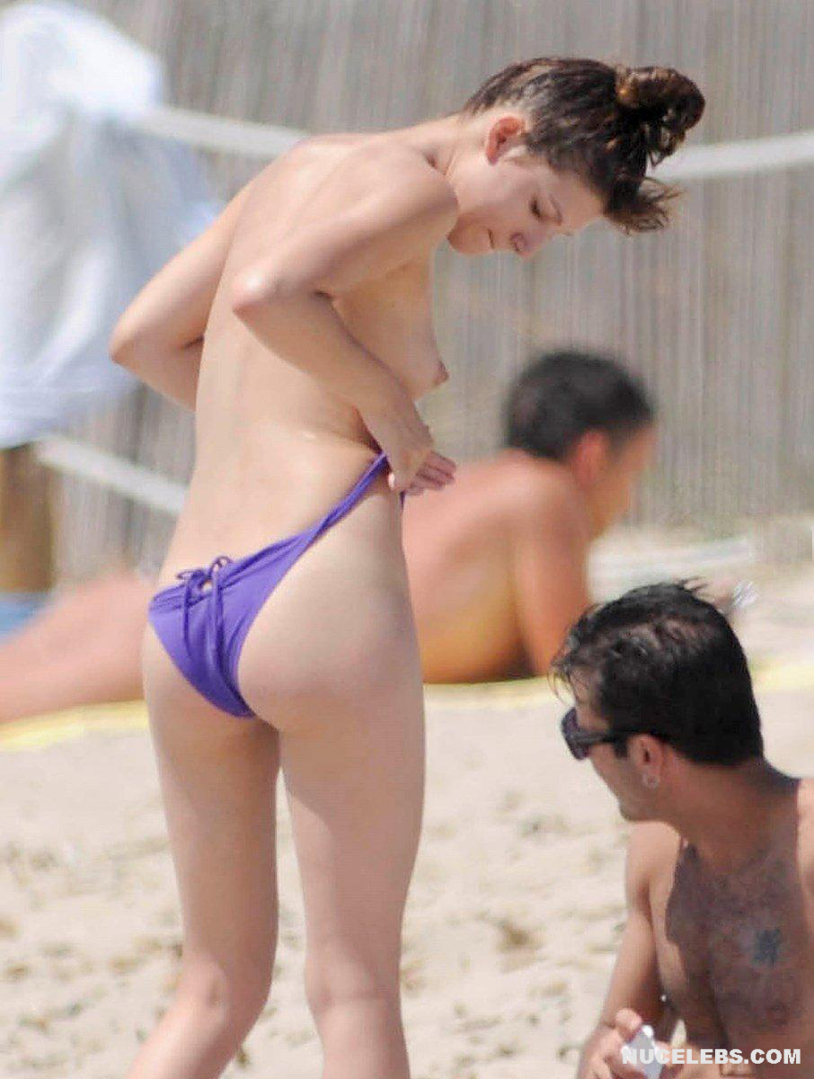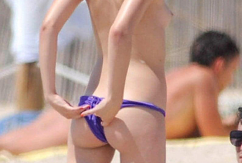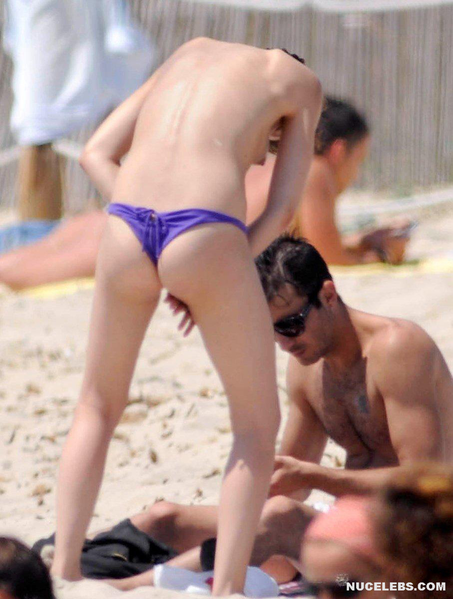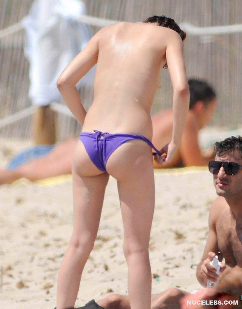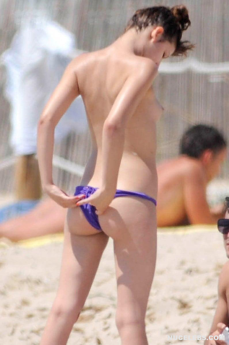 Úrsula Corberó delighted her fans by showing her naked boobs on the beach. The 36-year-old actress had a good time with her boyfriend, sunbathing in nothing but purple swimwear. Let’s be honest, this bikini barely concealed Úrsula’s stunning slim figure. After swimming, something clearly got into her bikini and she was trying to figure out what it was, almost exposing her pussy.