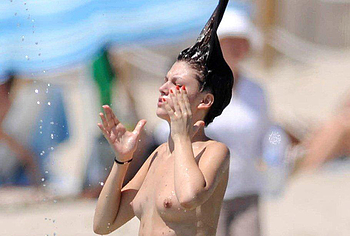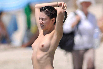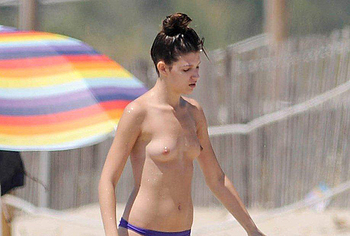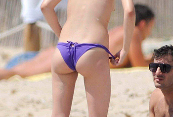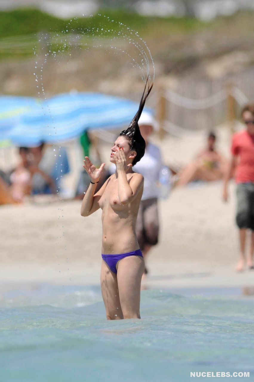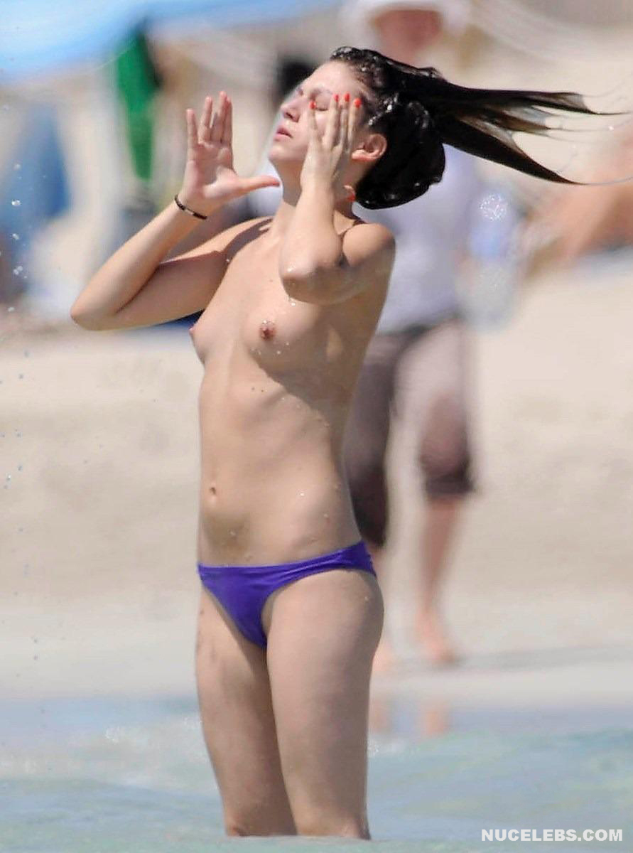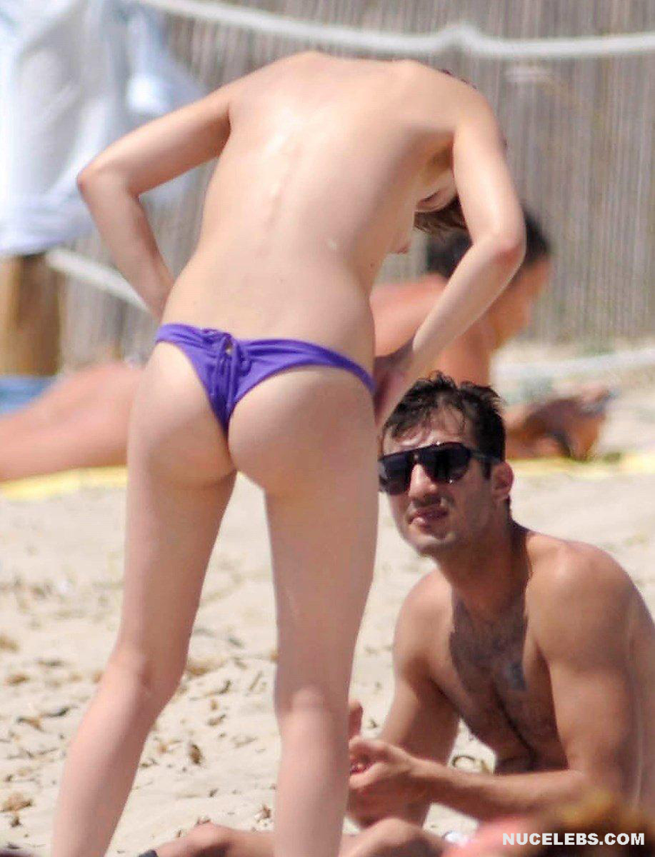 Úrsula Corberó delighted her fans by showing her naked boobs on the beach. The 36-year-old actress had a good time with her boyfriend, sunbathing in nothing but purple swimwear. Let’s be honest, this bikini barely concealed Úrsula’s stunning slim figure. After swimming, something clearly got into her bikini and she was trying to figure out what it was, almost exposing her pussy.