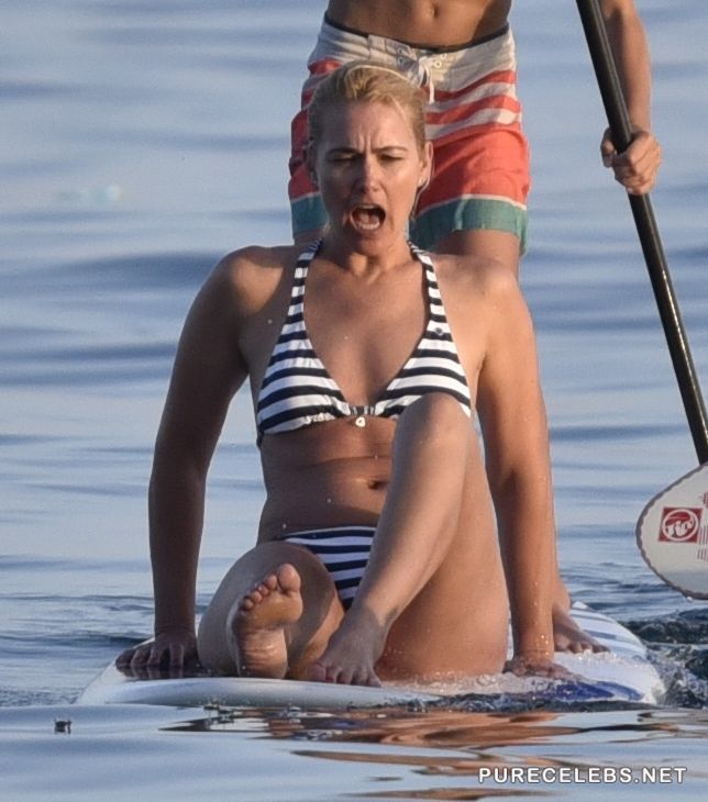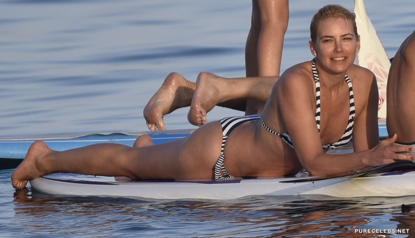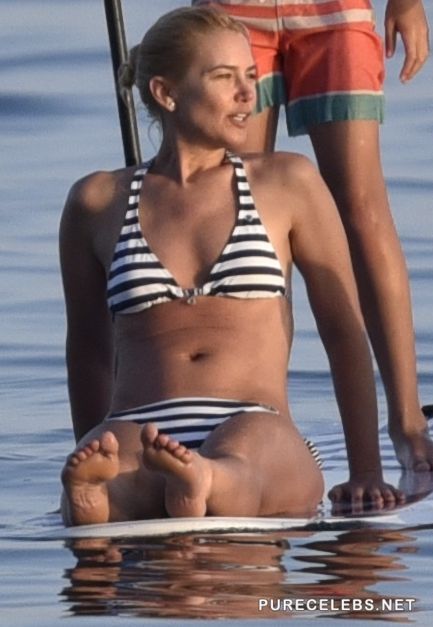 Argentine blonde model and business woman Valeria Raquel Mazza is used to getting her photos taken for magazines and fashion shows, but she’s still hasn’t gotten used to paparazzi following her around everywhere. That’s why she slipped up and let nosy photographers get candid shots of her zebra bikini while she was trying to paddle board. We must say that despite being 45, she’s still as hot as they come.