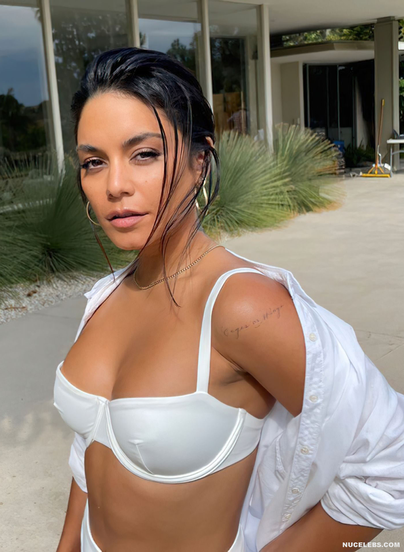 You can endlessly watch the American actress Vanessa Hudgens enjoying the shower outdoors. Vanessa Hudgens’ nude body is covered only by a petite white bikini, which only emphasizes her ideal forms. Her sweet booty in tight panties is like asking you to spank it! And when Vanessa Hudgens turned to face the camera, it was obvious that her huge nude tits were almost jumping out of her petite white bra!