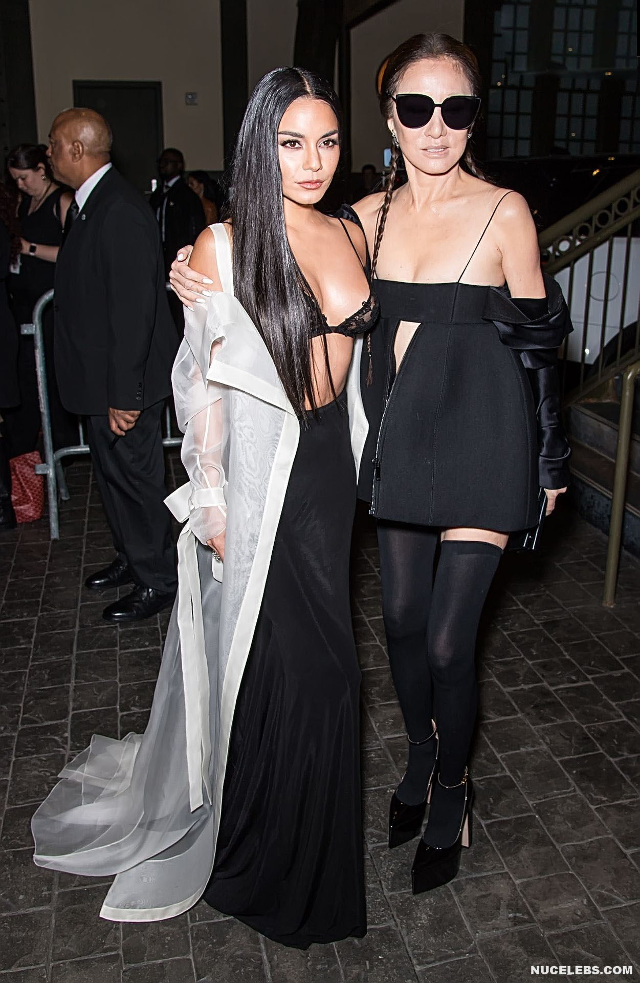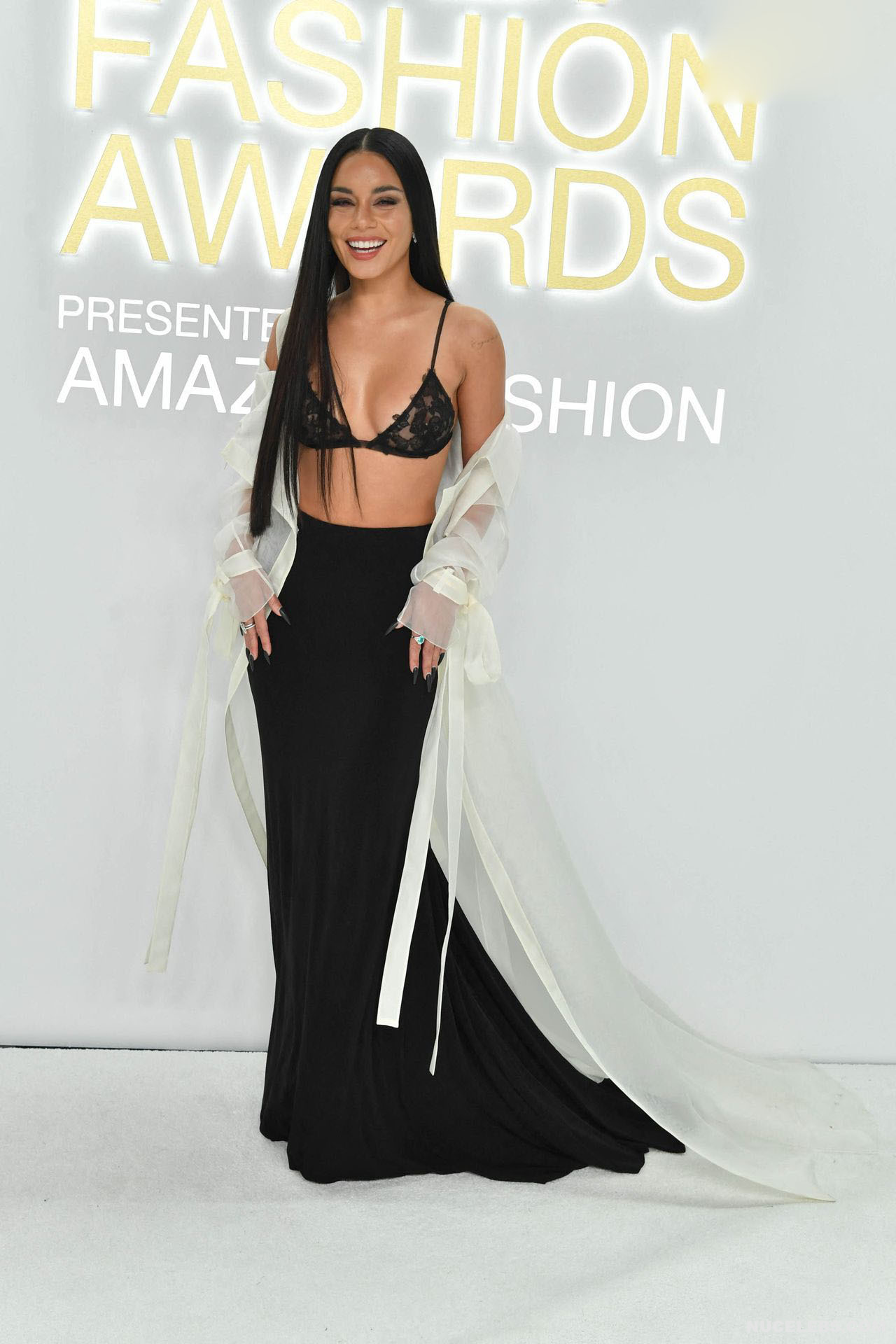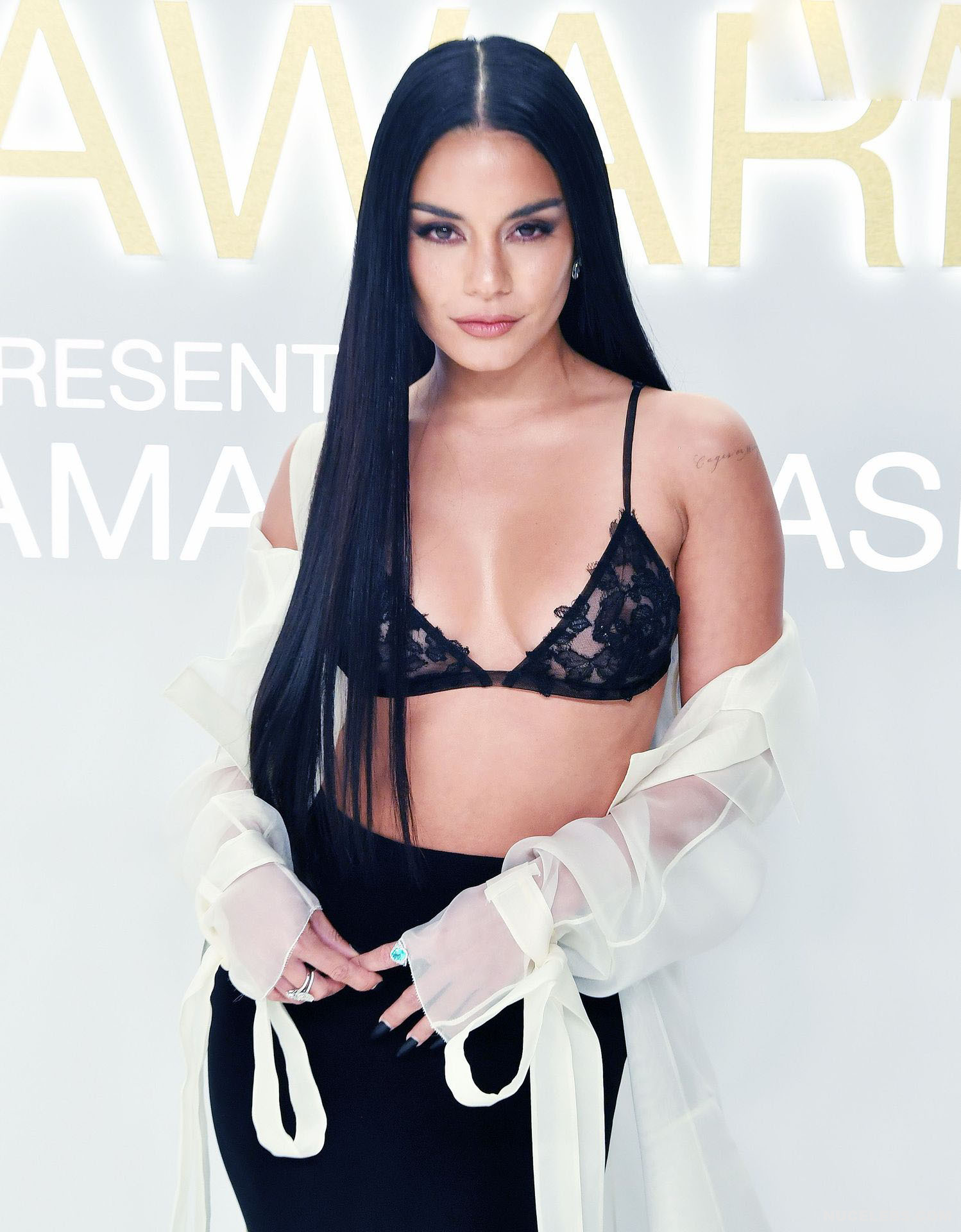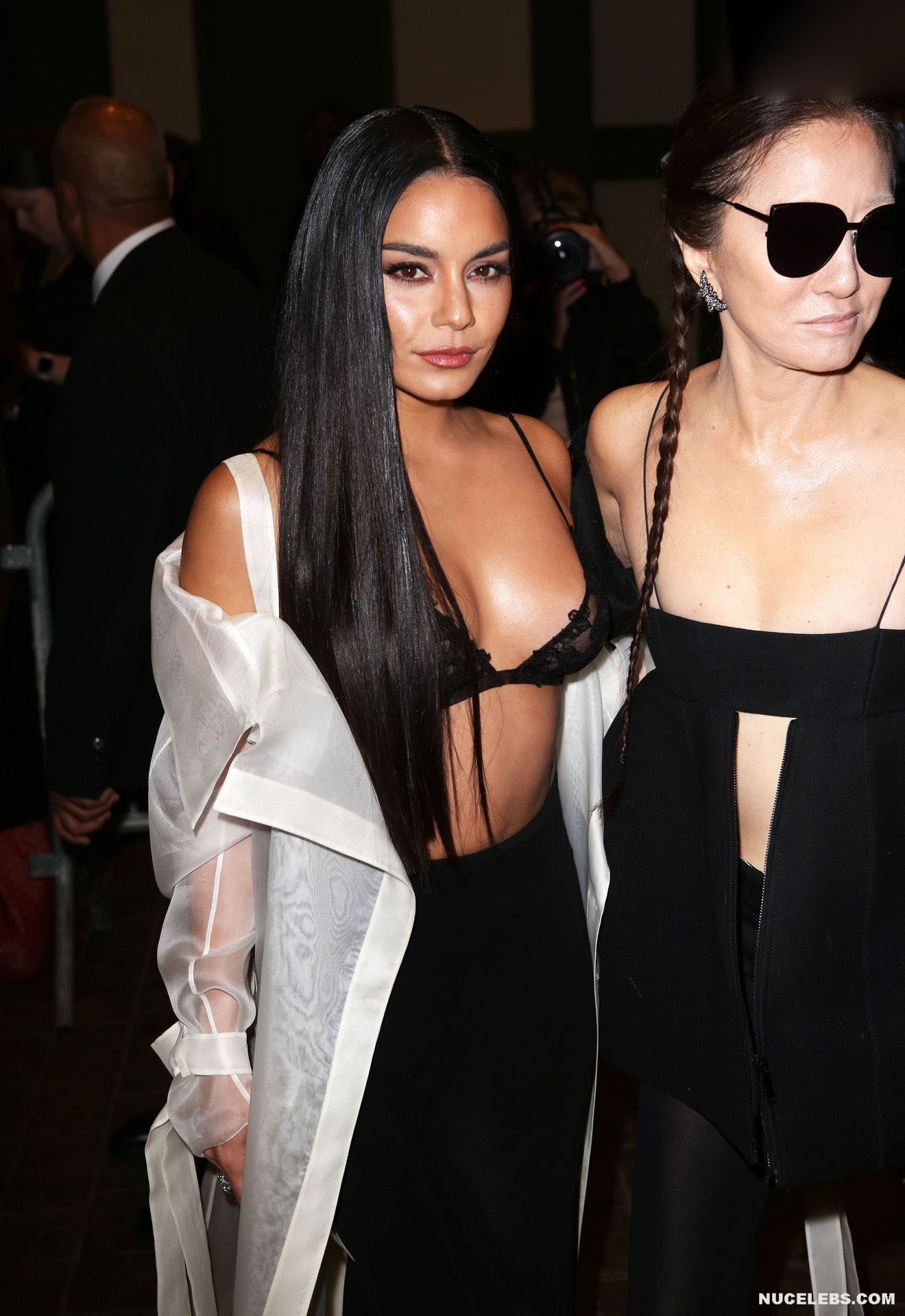 We can say that Vanessa Hudgens practically showed her nude titties in public at one of the events. The 33-year-old celebrity was wearing a long black skirt, as well as a white long transparent cape, which she did not button up. That is why her black lace bra was put on display. And since it had transparent inserts, Vanessa Hudgens’ nude tits with pierced nipples were even visible through!
