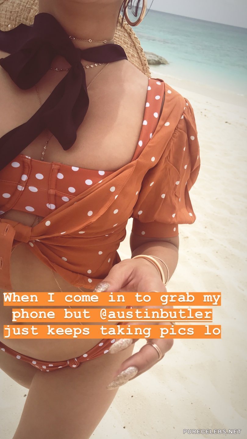 Vanessa Hudgens loves becoming the center of our attention. Charming actress has been ensuring to document her sun-soaked rest near the sea with photos in bikini at her phone. At first, girl posed on the sand showing off her tight figure dressed in a sexy red swimsuit with white dots. After that she decided to add some spice to her photos. So she began to pose in the sea with sexual smile, and the water caressed her gorgeous ass and her perfect body.