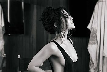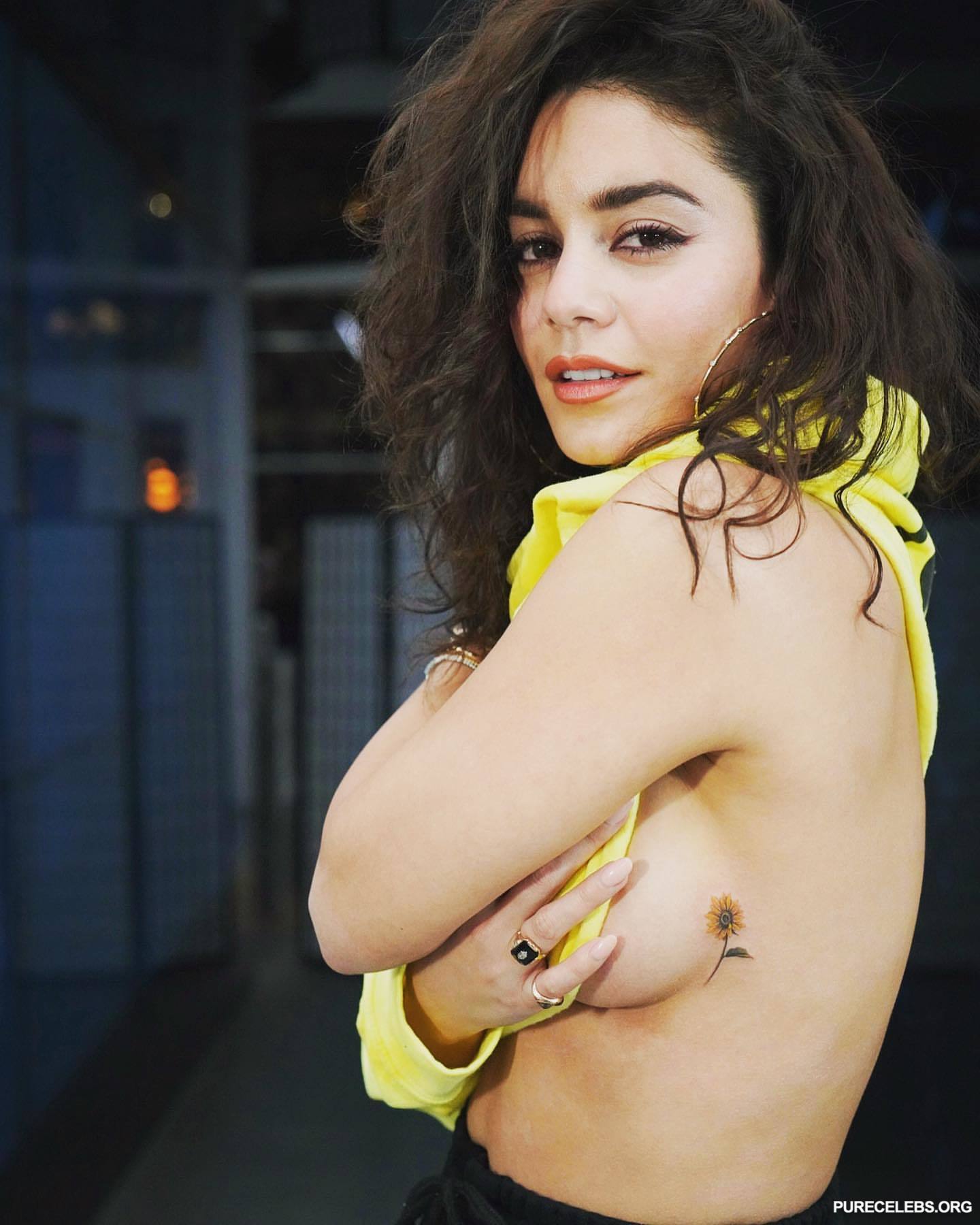 American actress and model Vanessa Hudgens often starred in explicit and almost nude photo shoots. For example, this celebrity posed on her knees in a black transparent overall, which covered neither her awesome butt nor her juicy tits. Also, this star did not hesitate to pose in a black top with transparent inserts on the pool. Needless to say that Vanessa Hudgens nude titties with brown nipples were visible through it? And in another photo, the girl posed topless, covering her chic breasts with her hand.