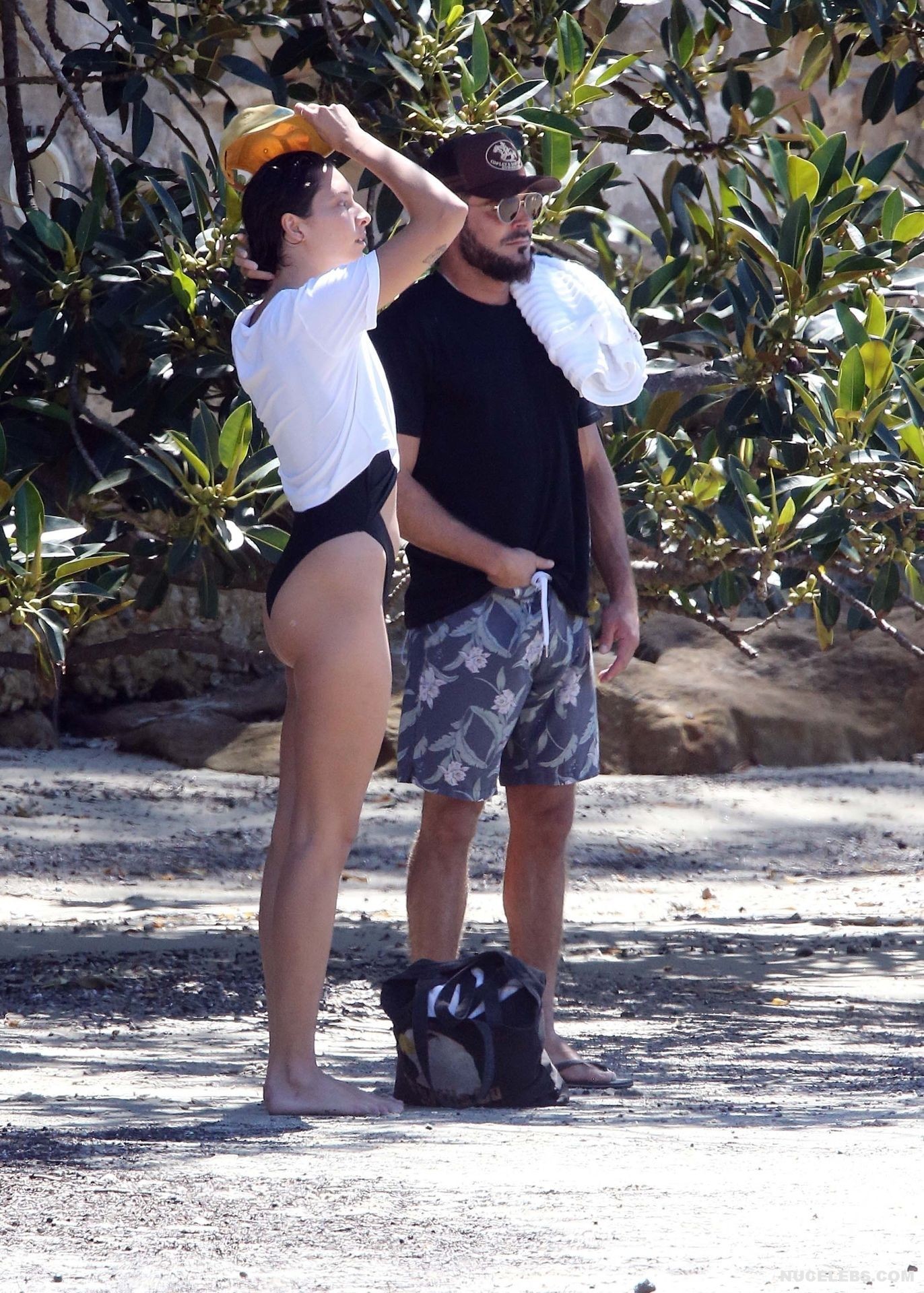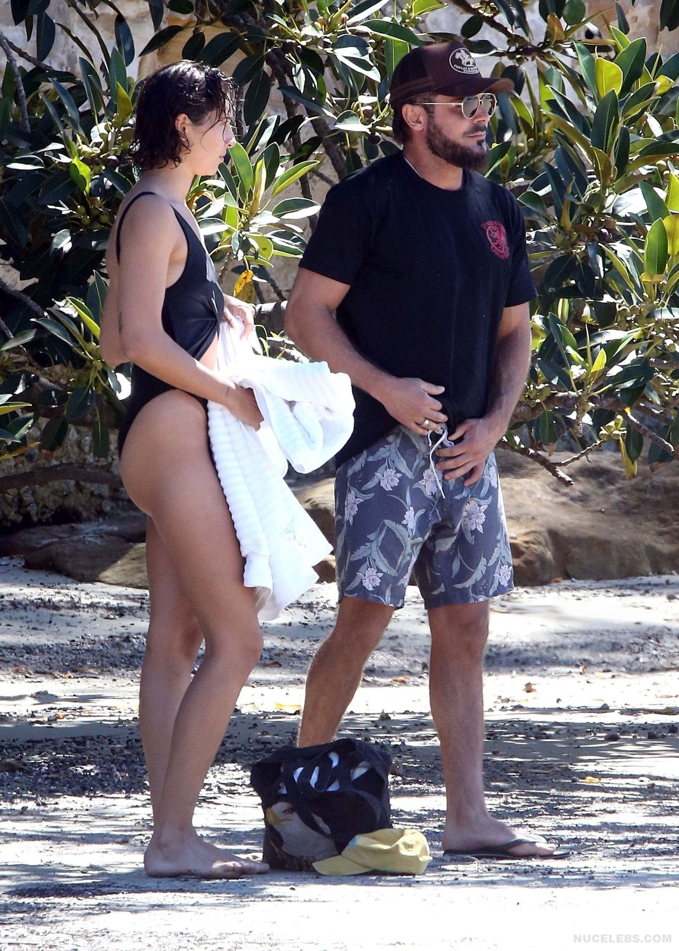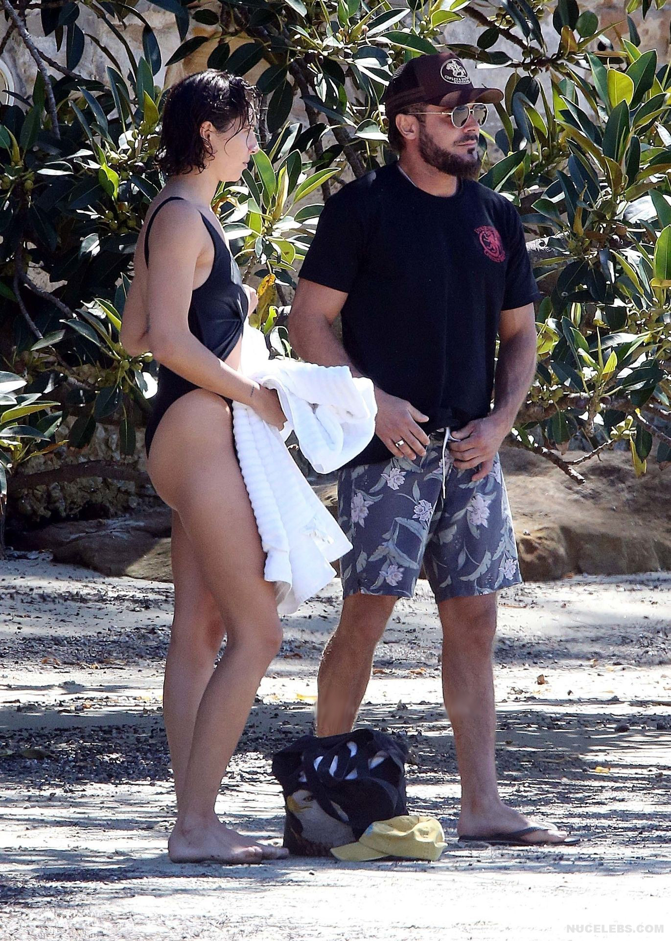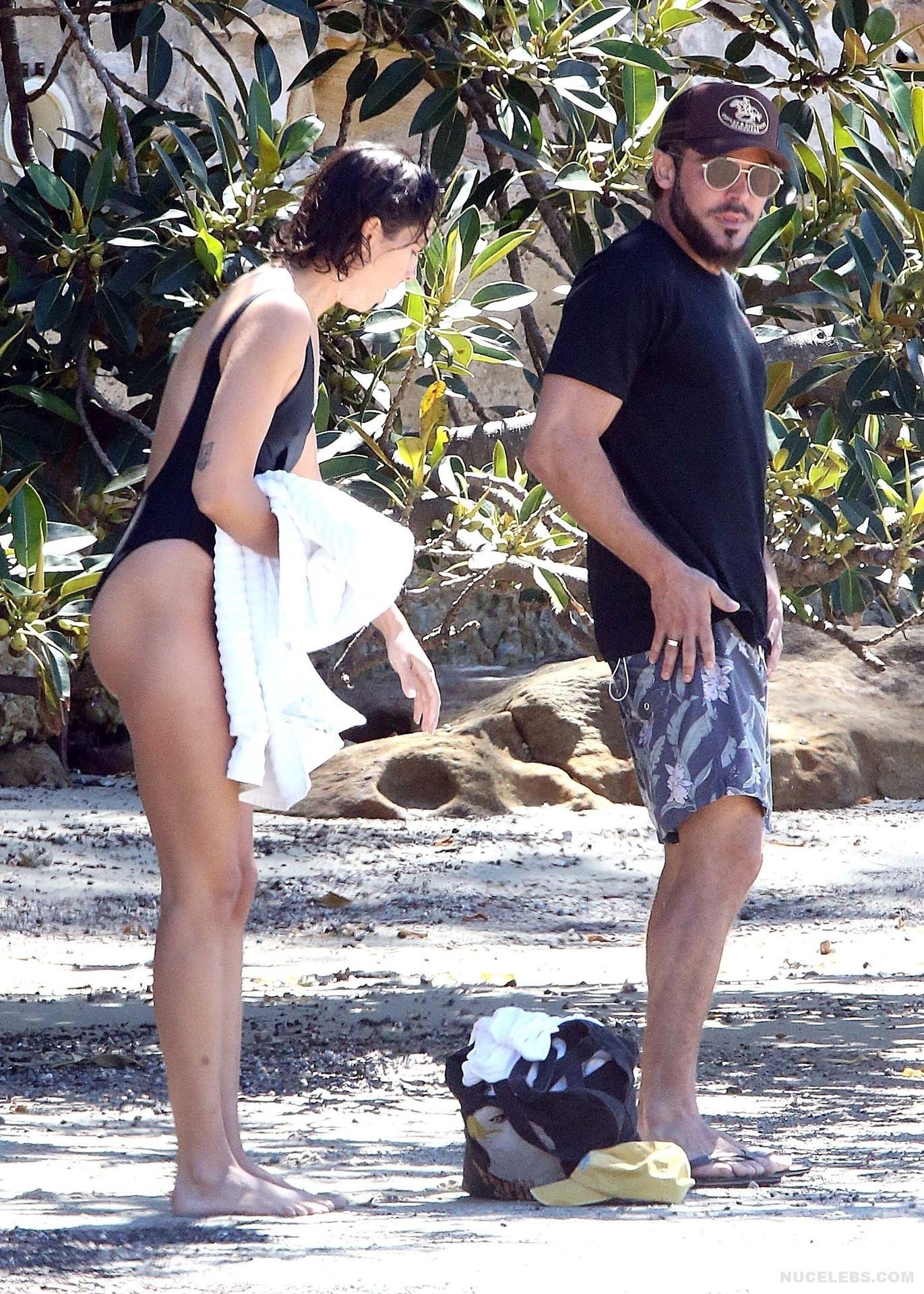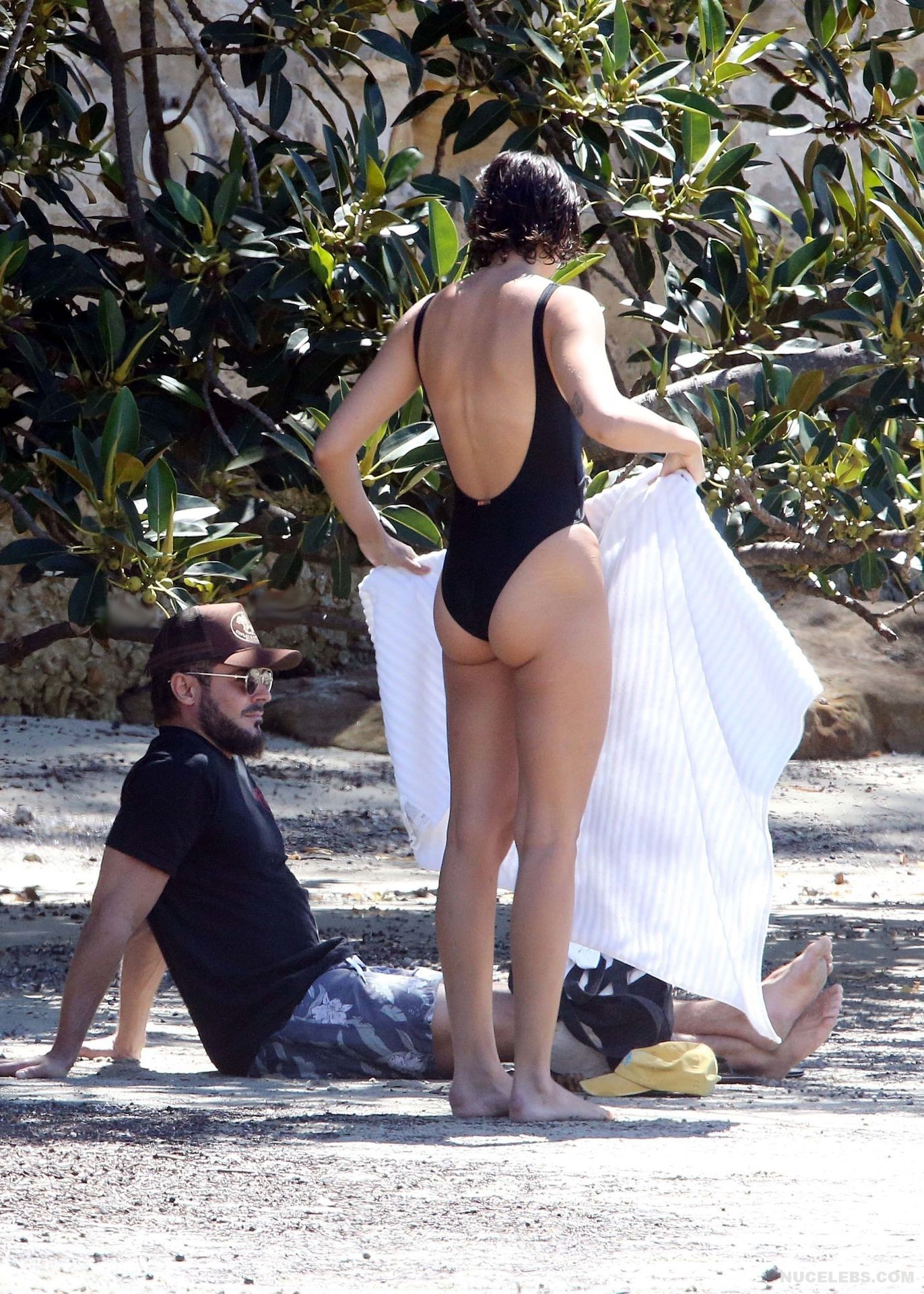 I think many of you have already heard about Zac Efron’s girlfriend Vanessa Valladares, with whom he spends all his free time. This Australian model really looks gorgeous, especially in a bikini. For example, when she was recently relaxing on the beach, it was impossible to look away from her awesome ass! This time, Vanessa Valladares wore a black swimsuit, the narrow bottom of which emphasized not only her peach buttocks, but also a great cameltoe. One cannot ignore the video in which this beauty in a miniature thong, showed off her huge booty, standing in a pond.