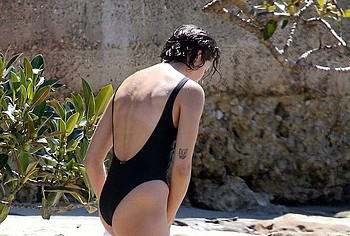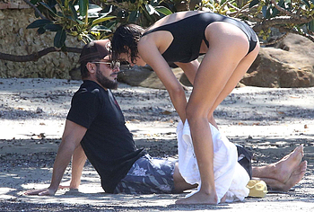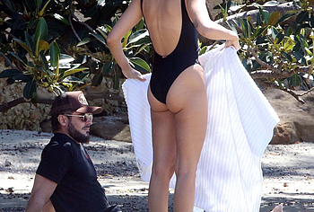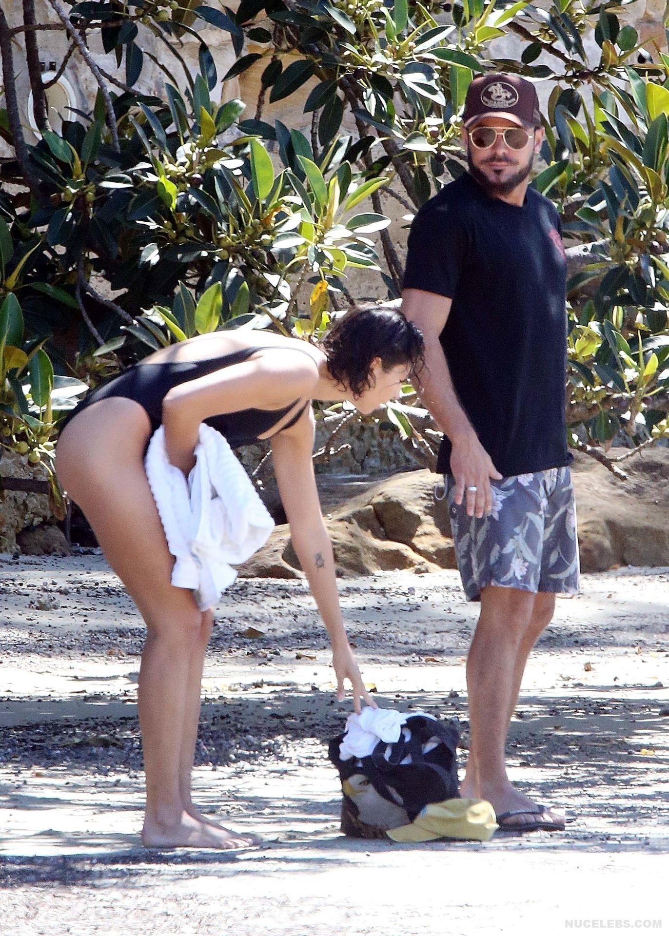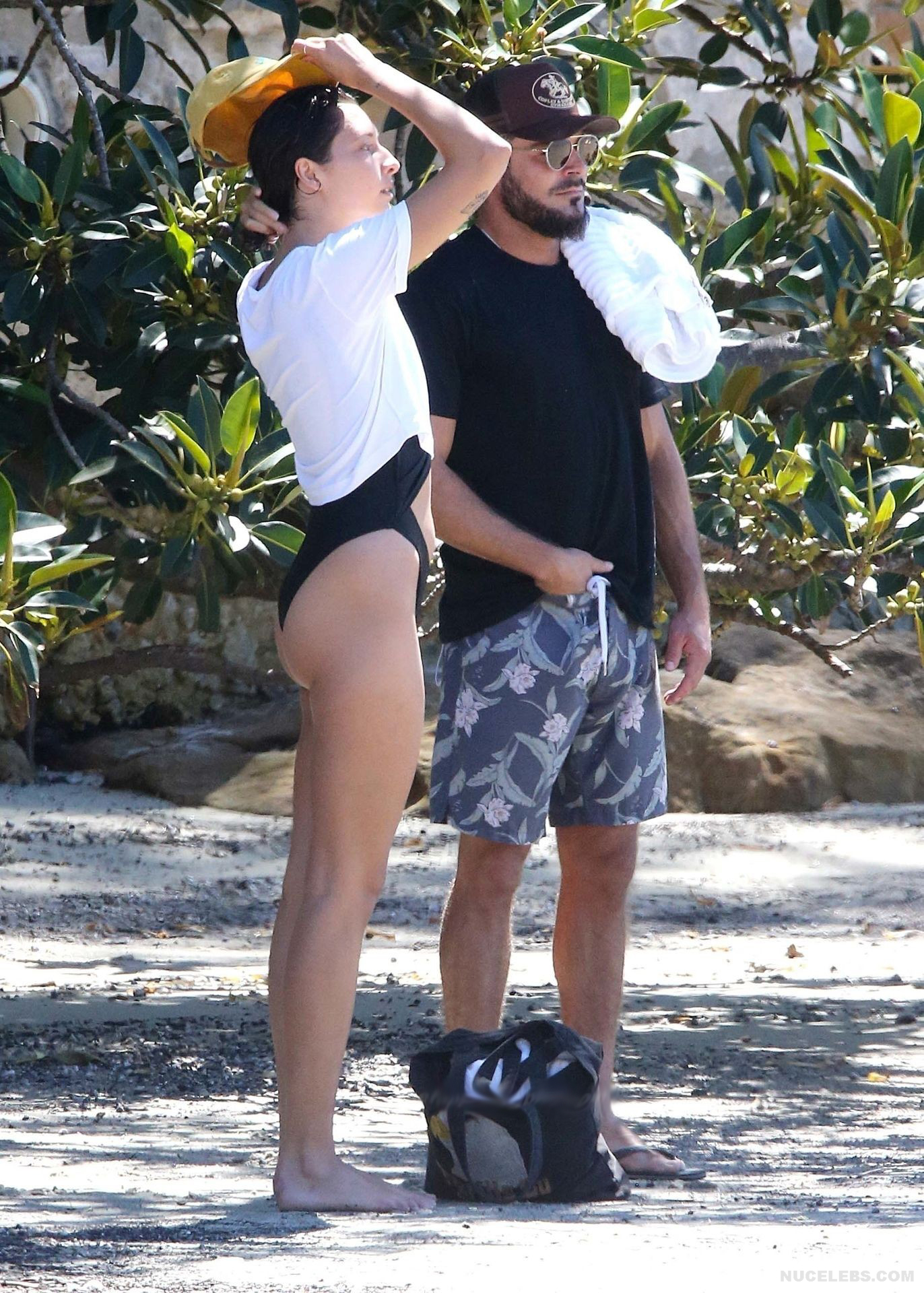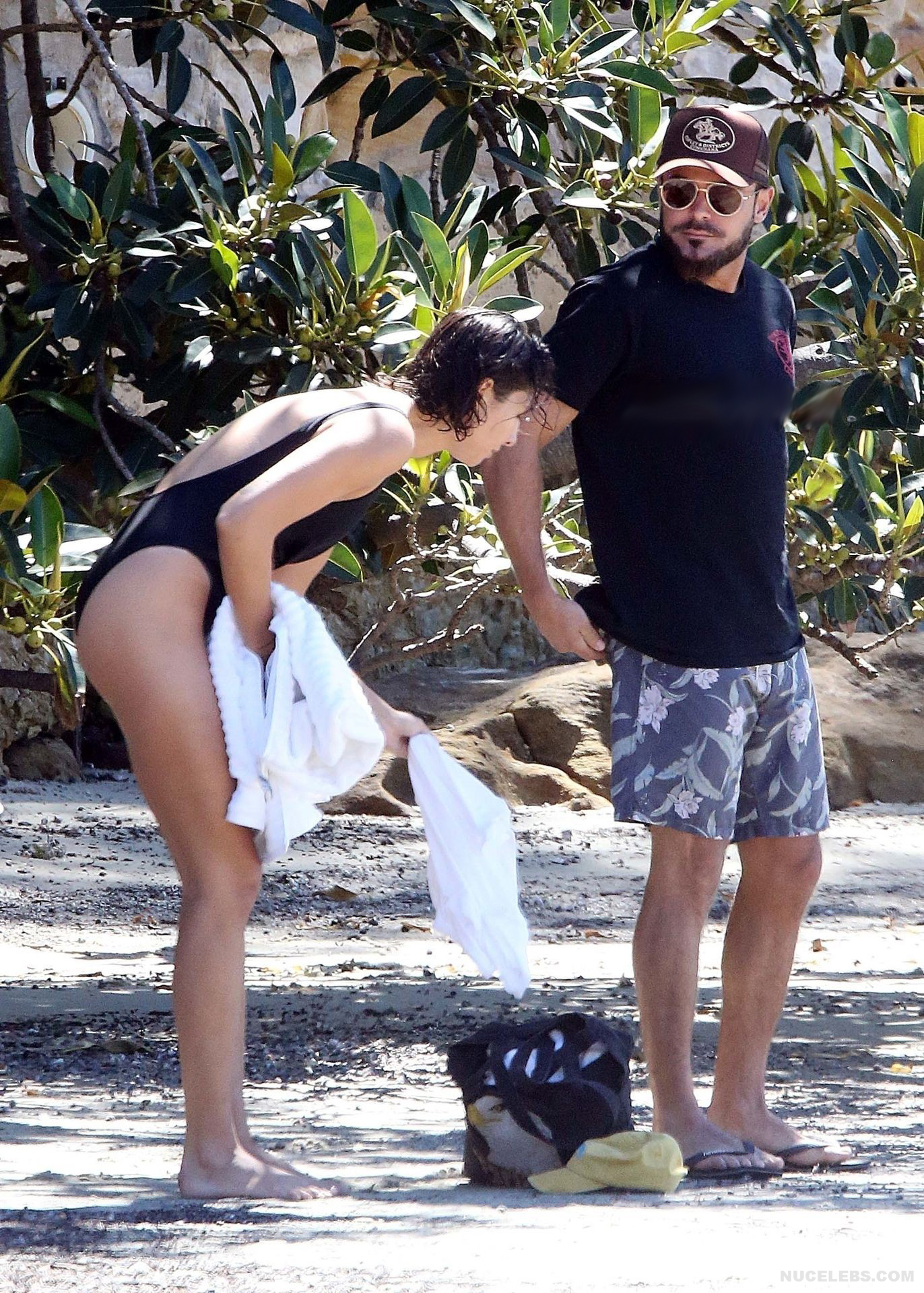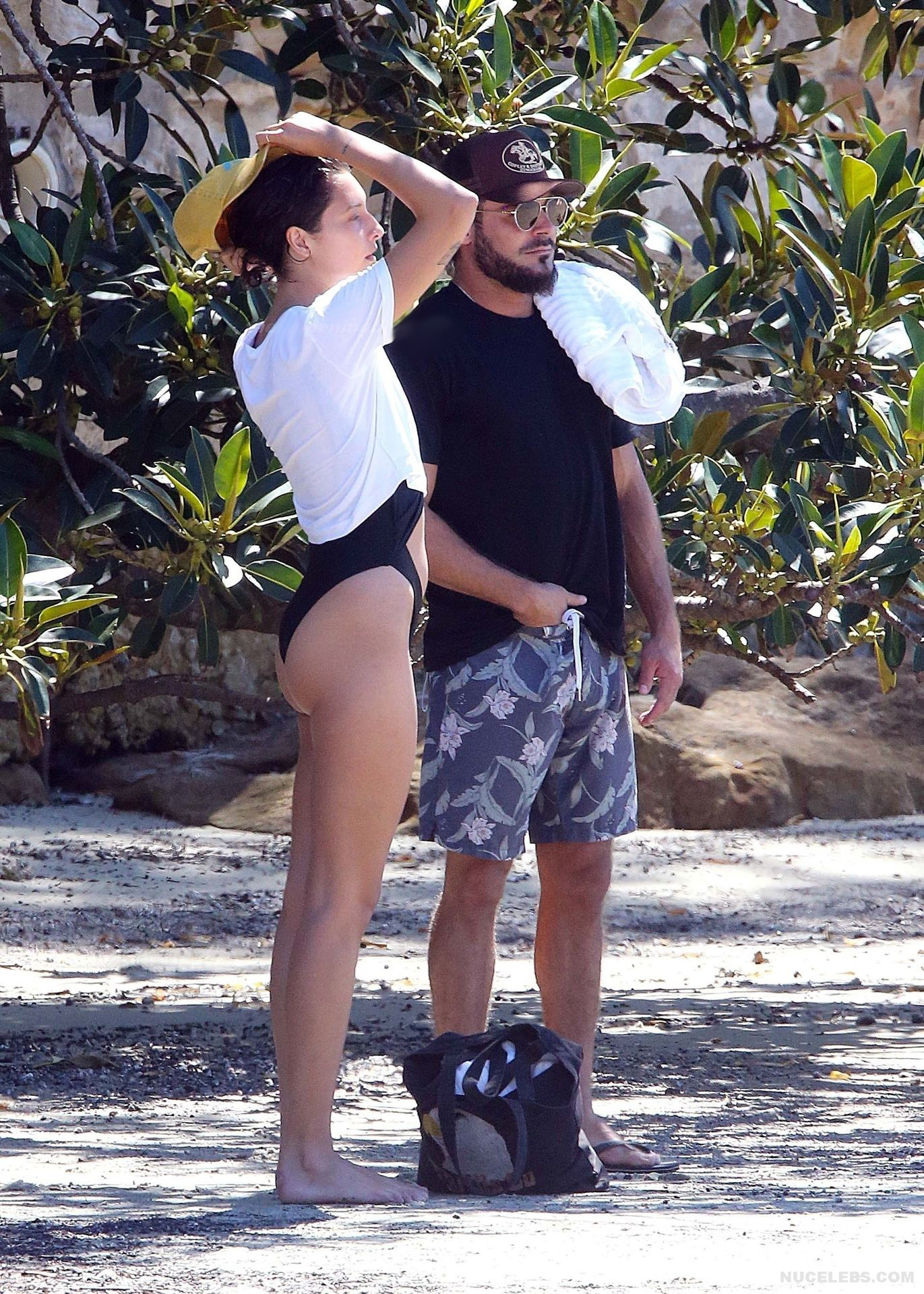 I think many of you have already heard about Zac Efron’s girlfriend Vanessa Valladares, with whom he spends all his free time. This Australian model really looks gorgeous, especially in a bikini. For example, when she was recently relaxing on the beach, it was impossible to look away from her awesome ass! This time, Vanessa Valladares wore a black swimsuit, the narrow bottom of which emphasized not only her peach buttocks, but also a great cameltoe. One cannot ignore the video in which this beauty in a miniature thong, showed off her huge booty, standing in a pond.