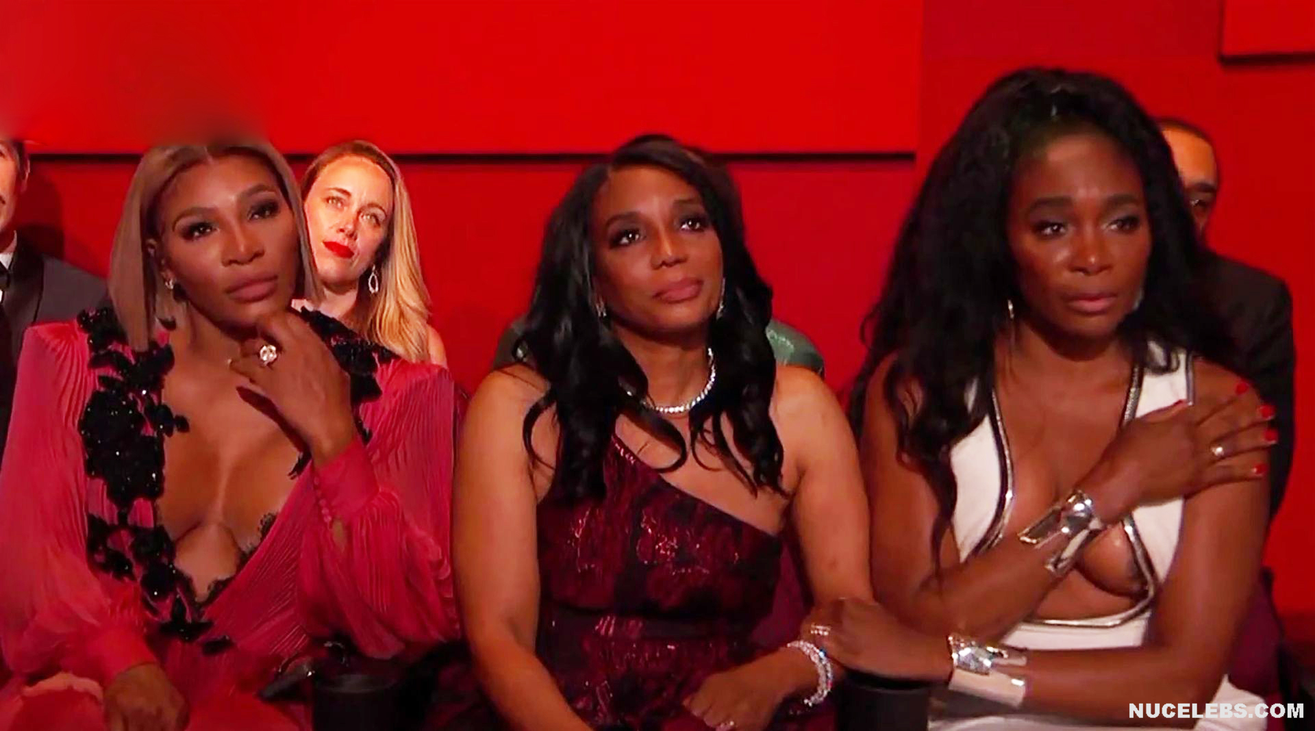 Did you know that Venus Williams showed her nude boobies during the Oscars? It seems that this American tennis player has chosen too revealing outfit. So, the paparazzi photographed a white dress with a very low neckline. In addition, it turned out that the celebrity was without a bra. And even though she covered her cleavage with her hand, she didn’t manage to avoid the oops moment. At some point, Venus Williams’ nude boob with a brown nipple slipped out of her dress.