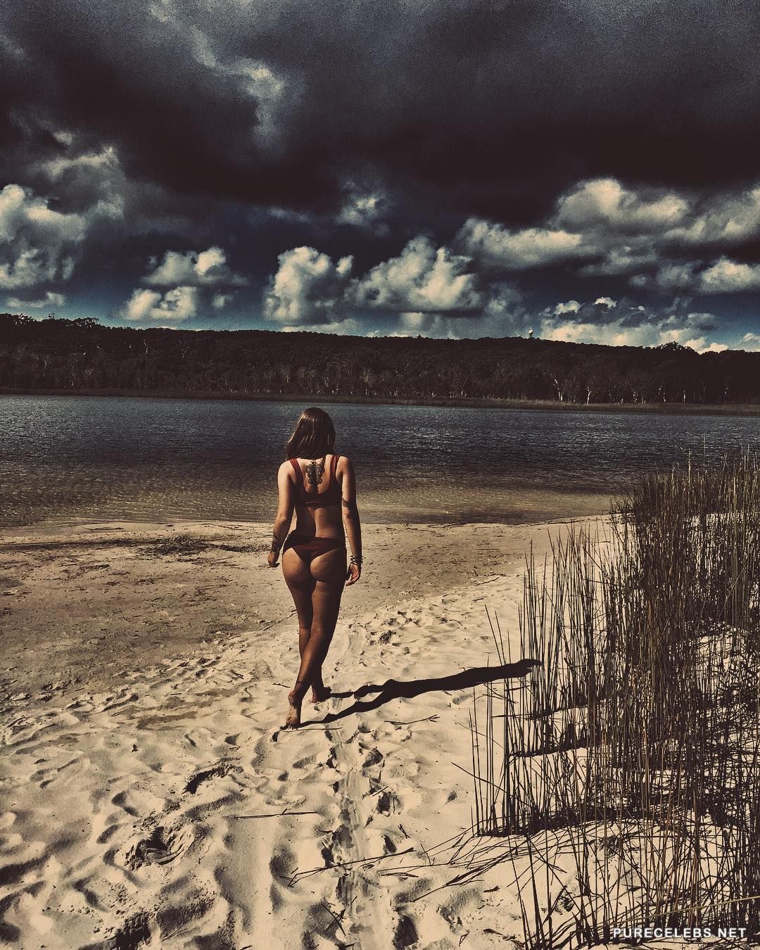 Not only we get to see Xoe Zahara nude in a hot close up, since this babe likes to take selfies where her ass is obvious, we also get to see her holding hands with another hot looking, naked babe, while going into the sea. Check out the rear view of this babe, as she turns back wearing a bikini and try to take eyes off her, if you can!