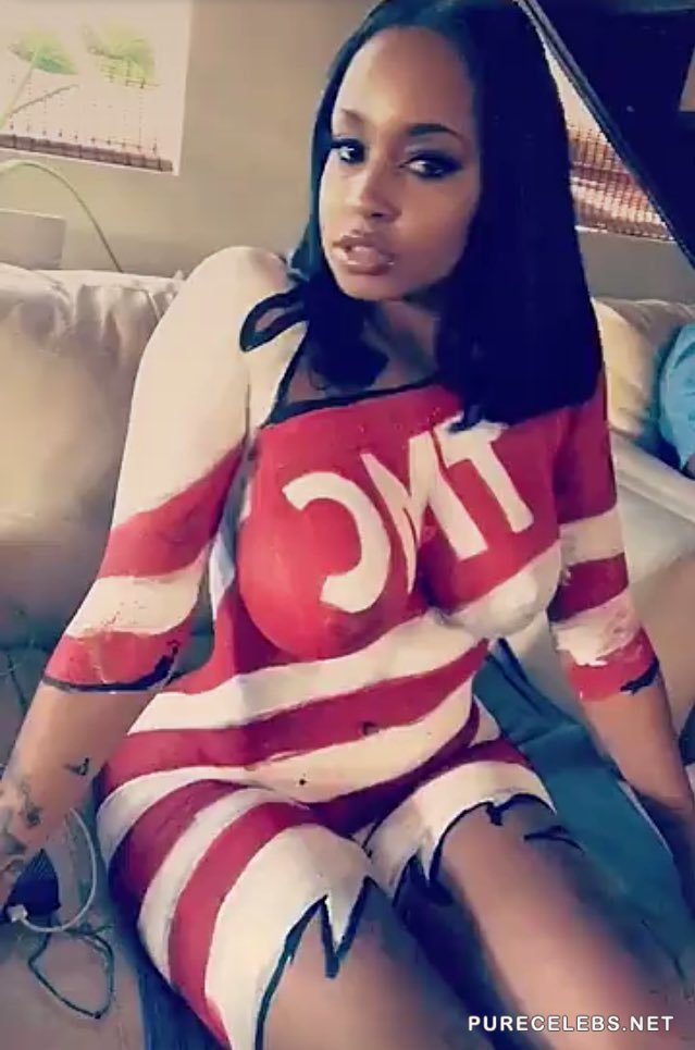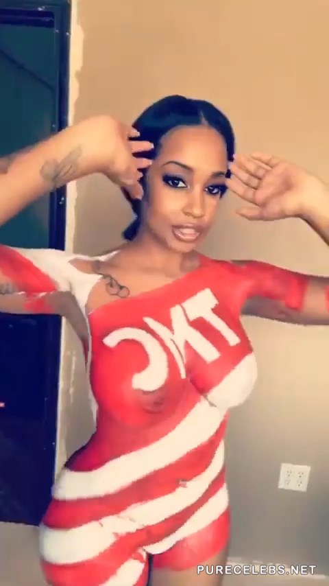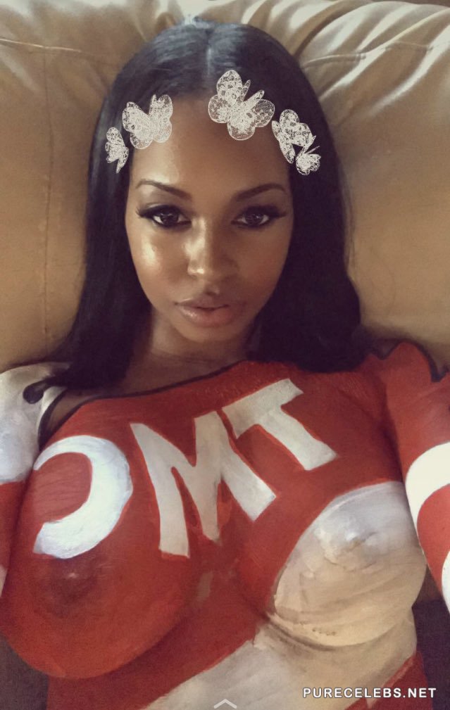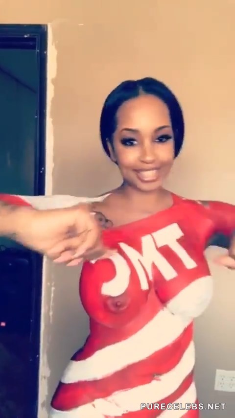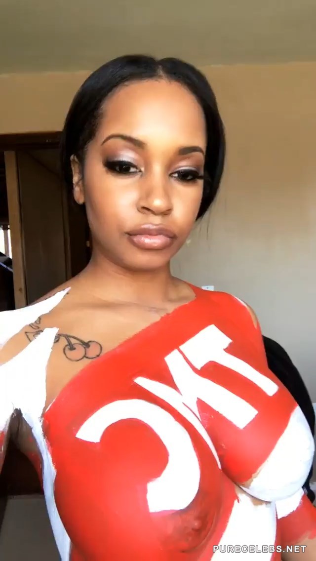 The plus size Instagram model PHFame recently posed nude as part of a sexy photo shoot. In the photos she is pictured completely nude with her huge tits and round bubble but covered only by red and white body paint. The hot XXL ebony linked several steamy selfies she took during the shoot. Her delicious curves are surely the envy of many women and the fantasy of men.