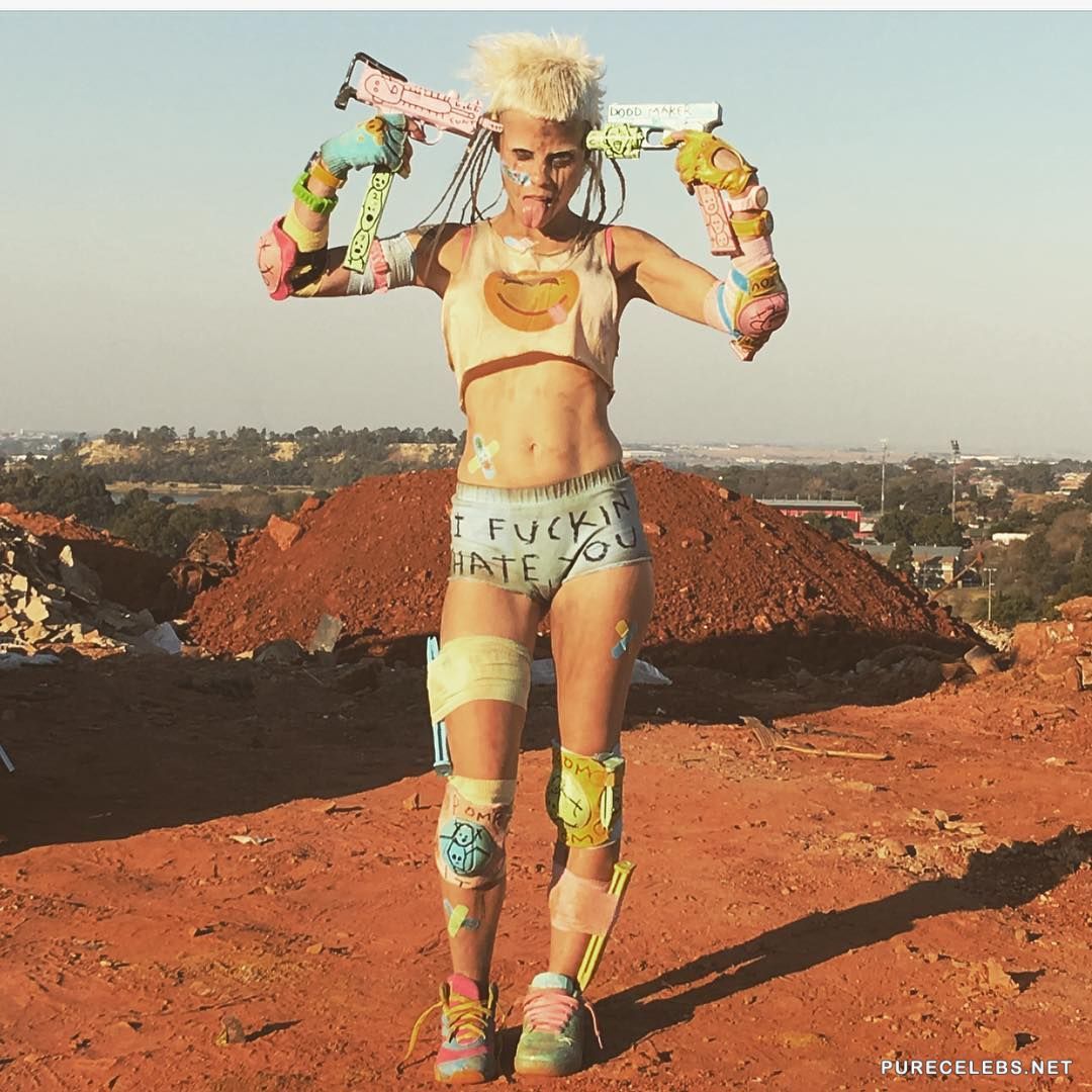 Yolandi Visser is known for being a member of the gangster rap group Die Antwoord. This South African duo have been lighting up the music charts for the past several years with their provocative lyrics and even more provocative outfits. It is no wonder that this female singer has no problem taking off all of her clothes and posing with her body covered only in body paint and face makeup.