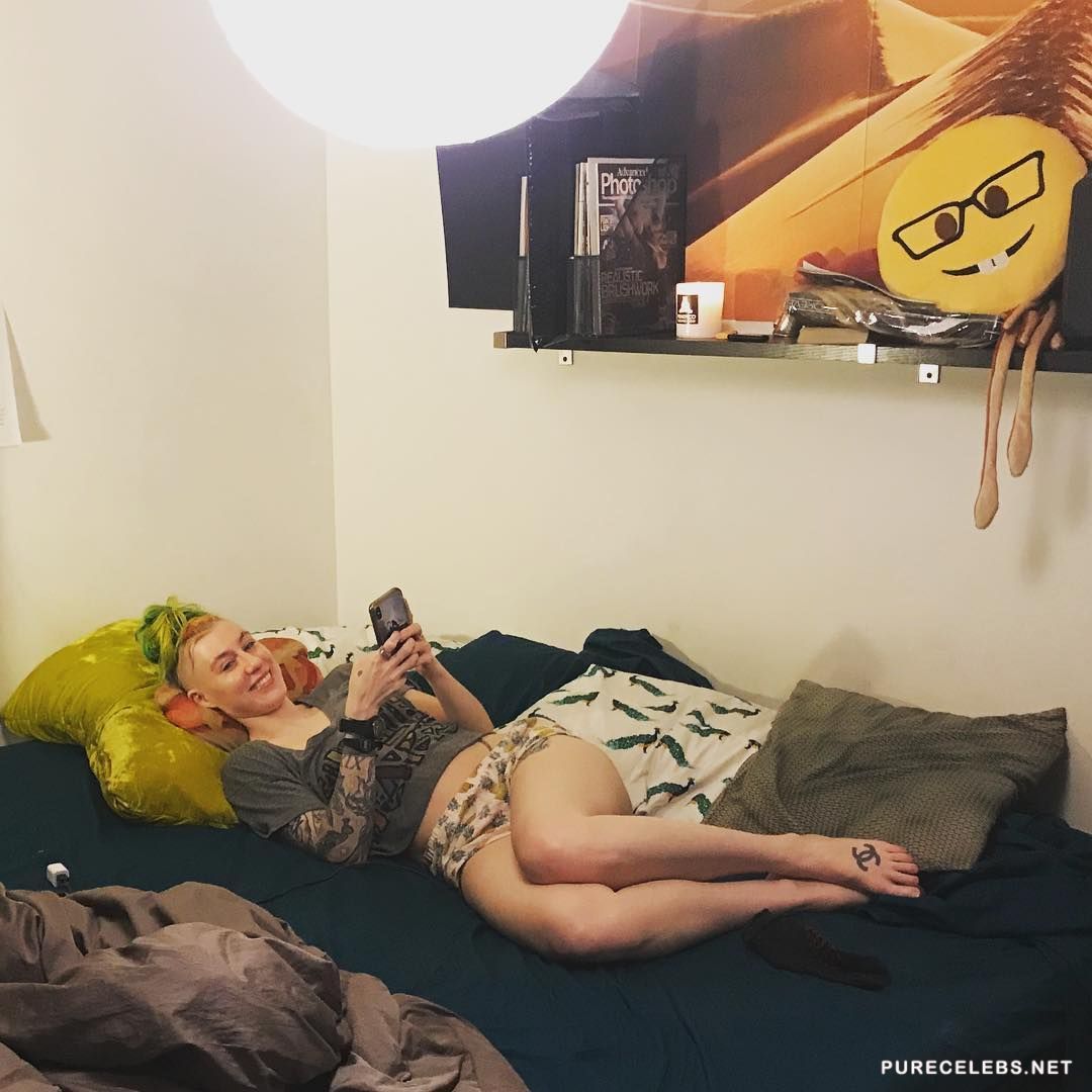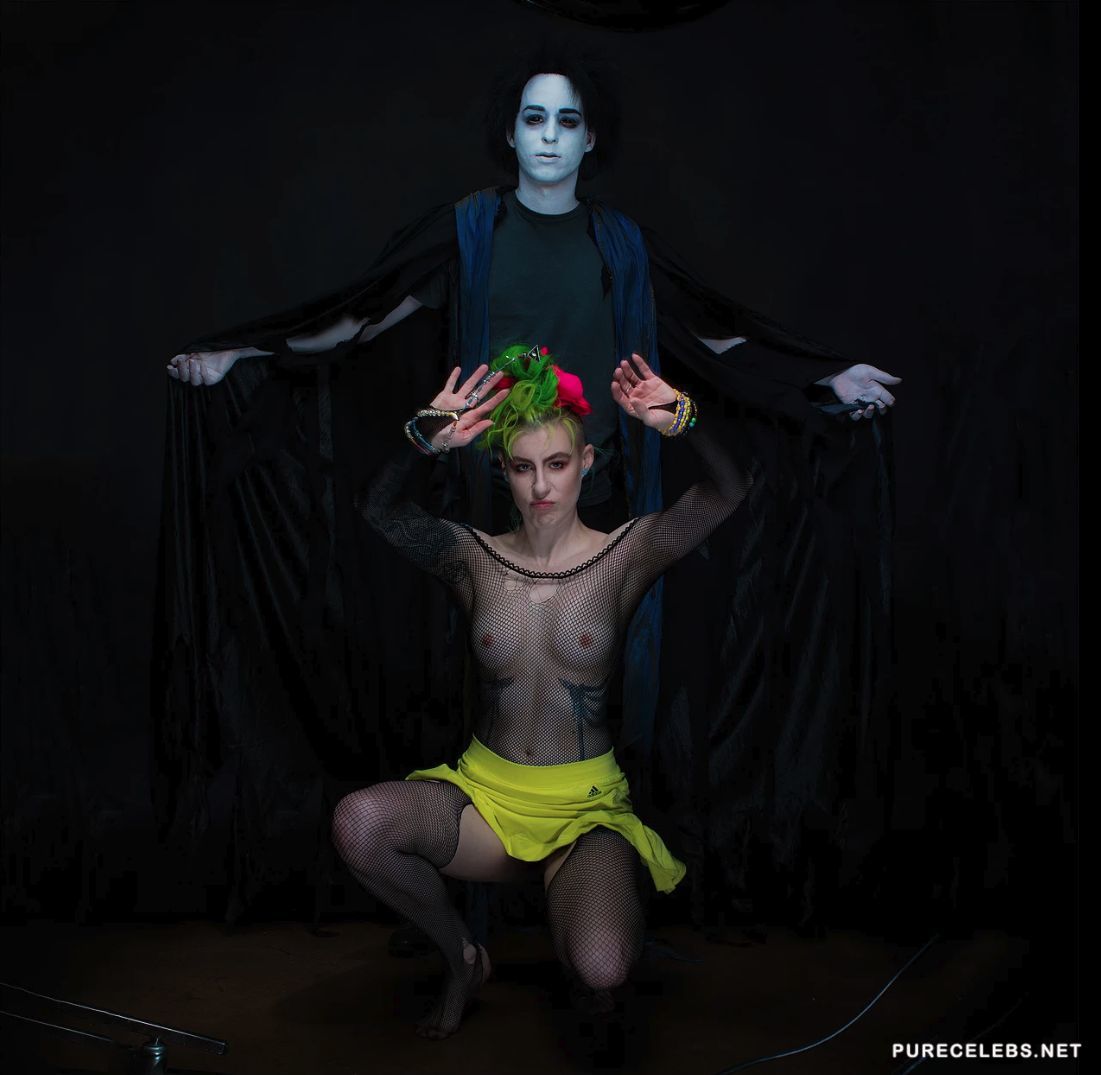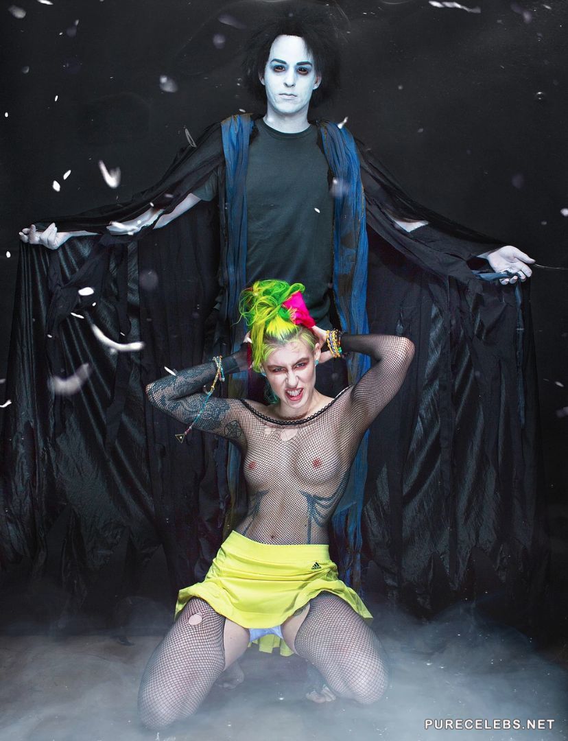 If you are a fan of Comic Book Girl 19 on youtube, you might want to check out these pics. You will see your favorite e-celeb in a whole new light, without any of her clothes. She is checking her hot body with tattoos out in front of the mirror and she is also doing some hot topless cosplay. Her nipples are very hard here.