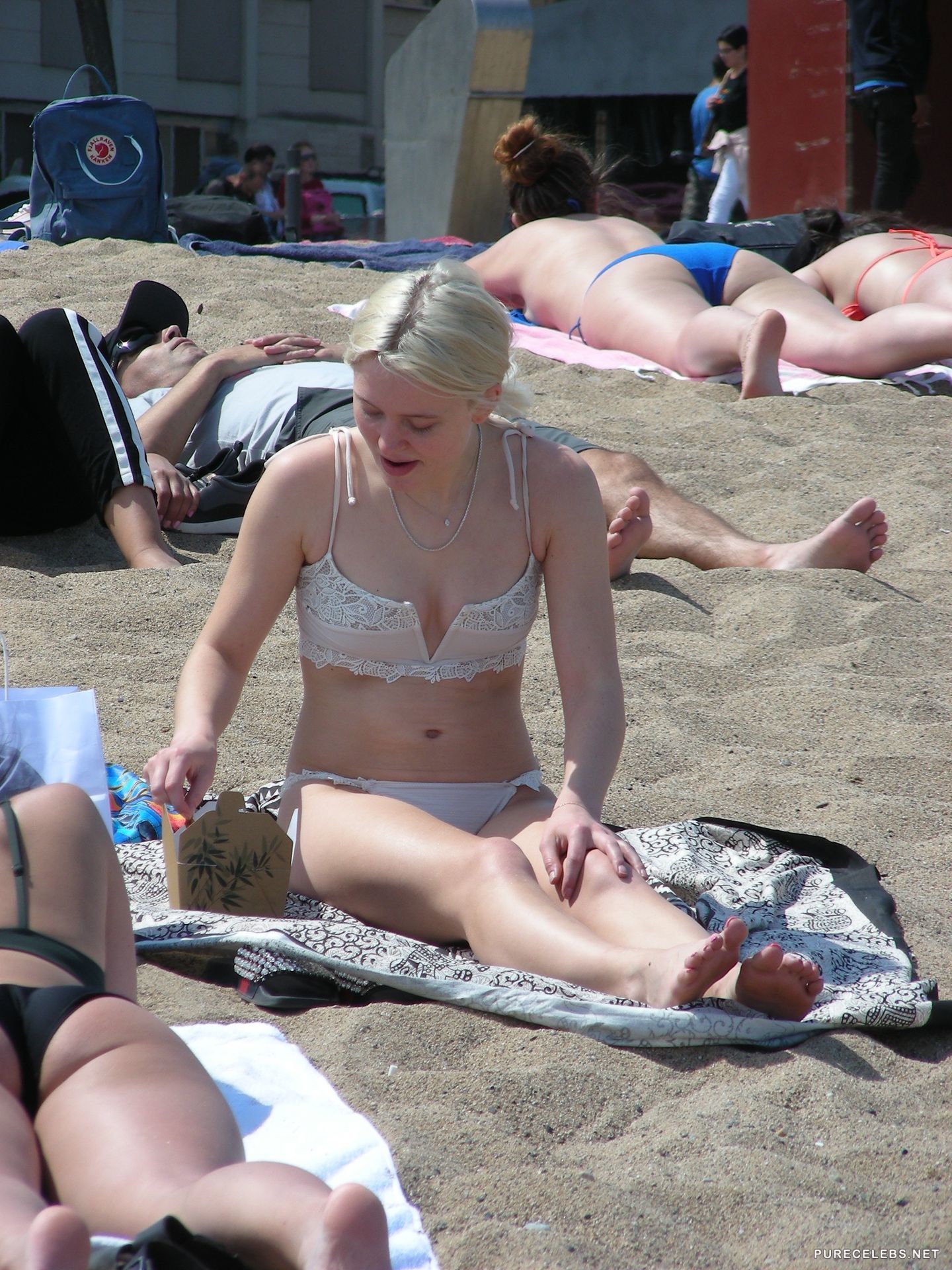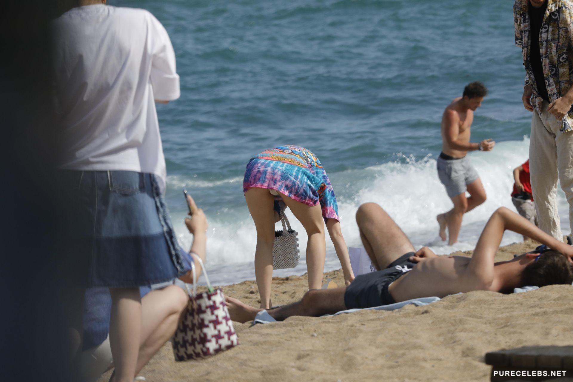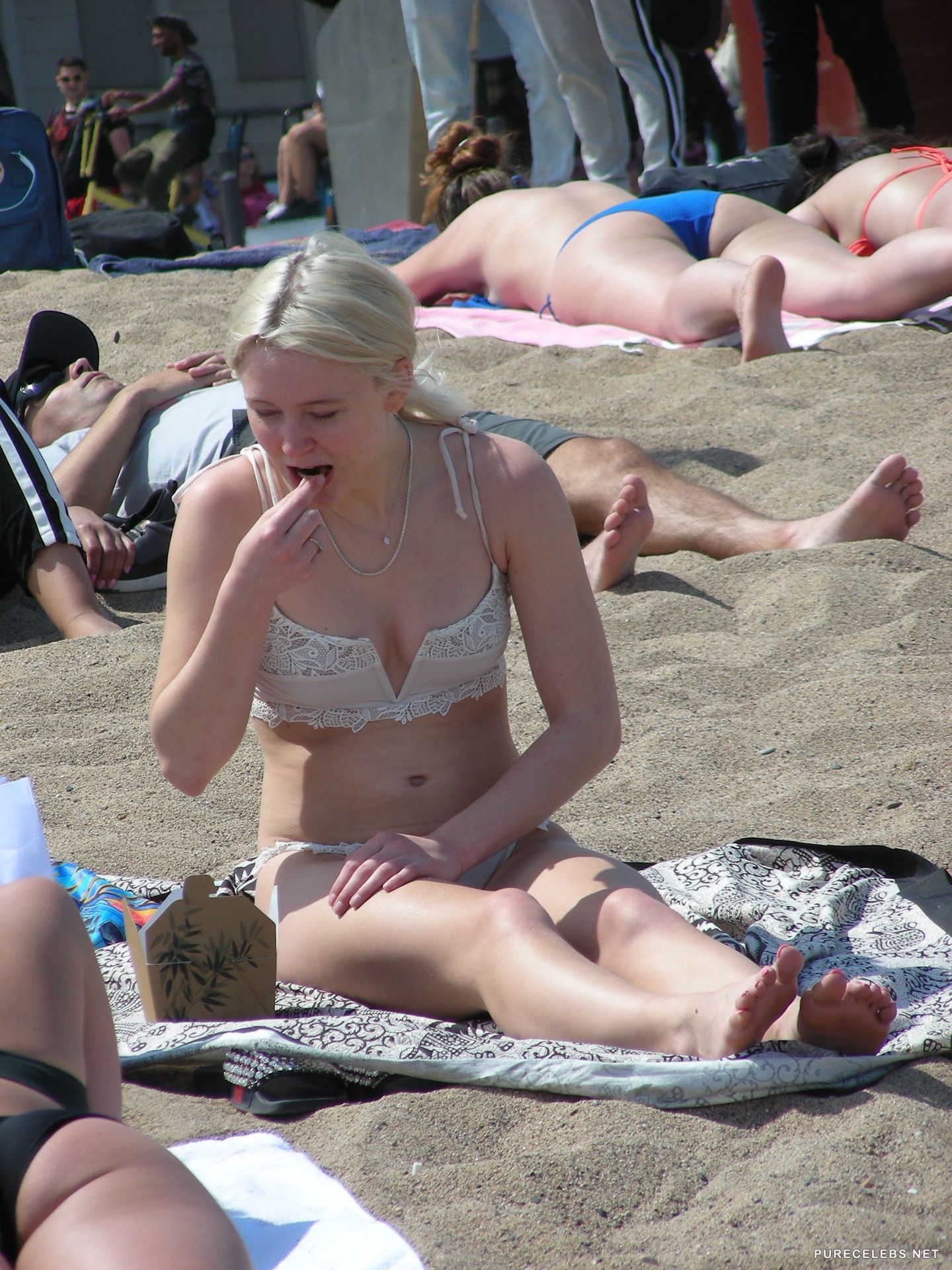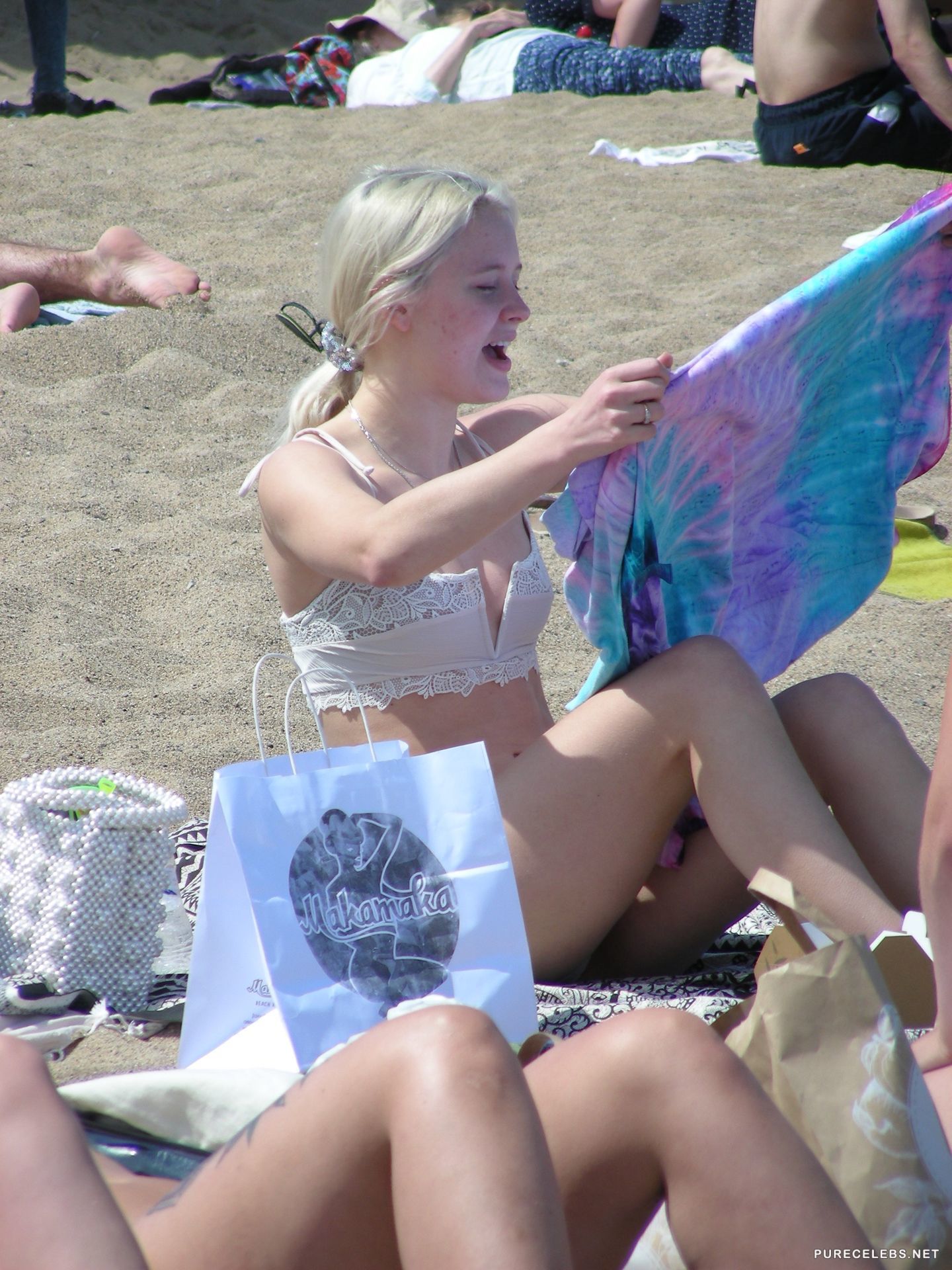 Sometimes a Swedish singer Zara Larsson likes to soak up the beach and sunbathe. She was recently caught by the paparazzi during her beach holiday. The star was wearing a beautiful white bikini which emphasized her wonderful slim body. Her boobies looked very seductive in a lace bra, and her lovely panties nicely wrapped around her sweet booty. This charming blonde is sure to make you dream of her all night long!
