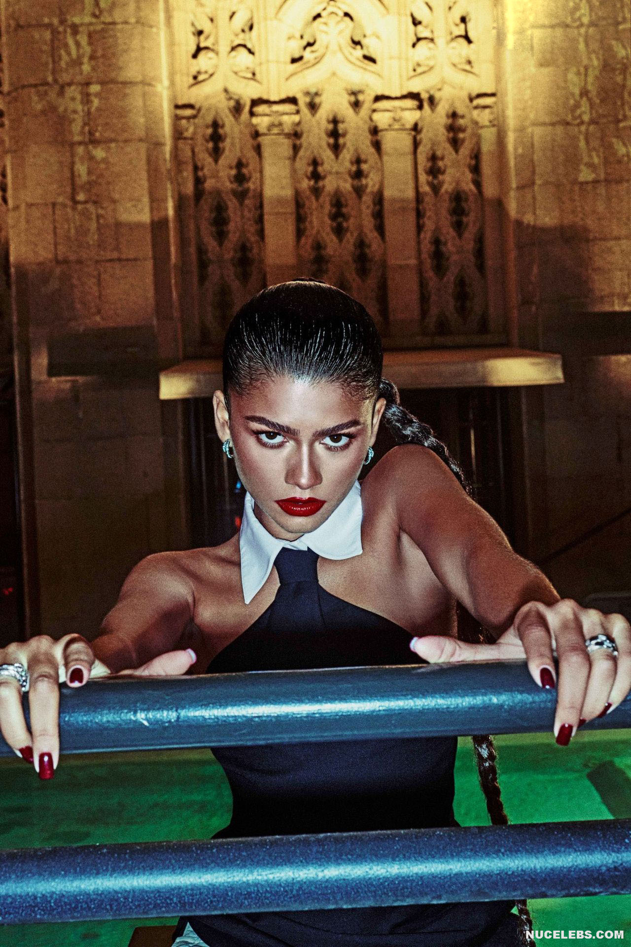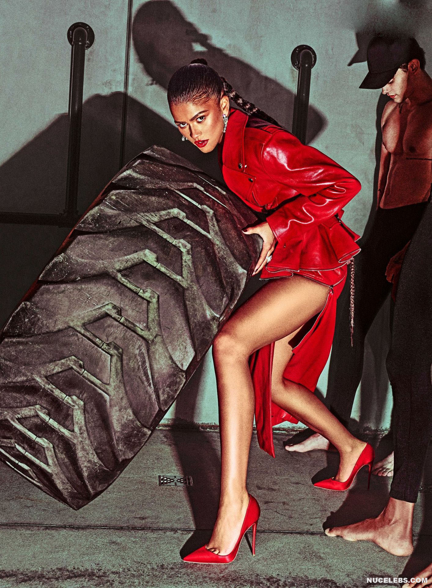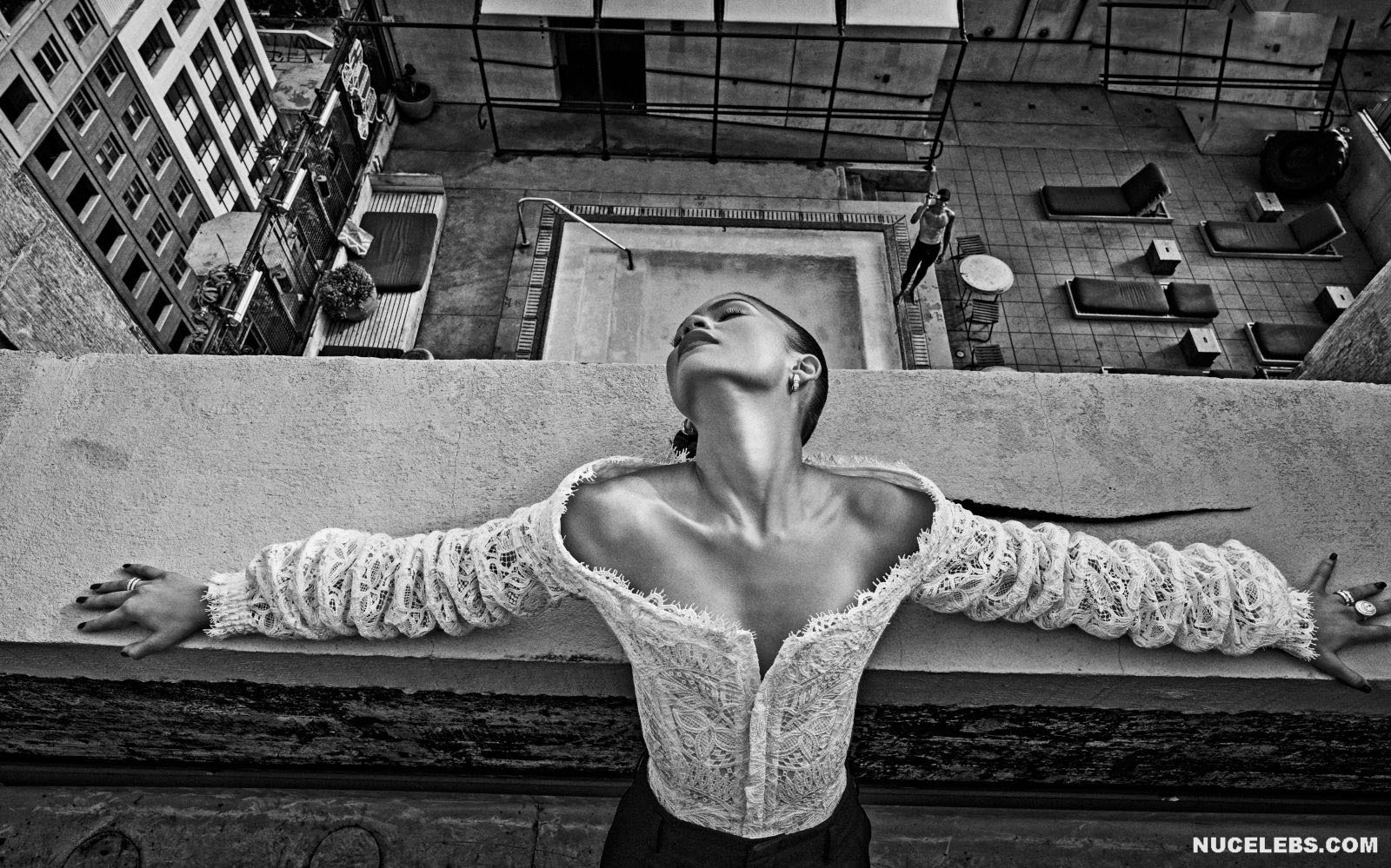 Zendaya Coleman loves to tease her fans. Her sultry and alluring looks in the movie make it impossible to look away, as she exudes an aura of undeniable sex appeal. In one of the photo shoots, this celebrity posed in an unbuttoned shirt and a silver bra. Moreover, the bra was so small that it did not cover Zendaya Coleman’s nude titties, but only her nipples. The star also showed off her toned derriere in a tight black dress as she posed on a rooftop.