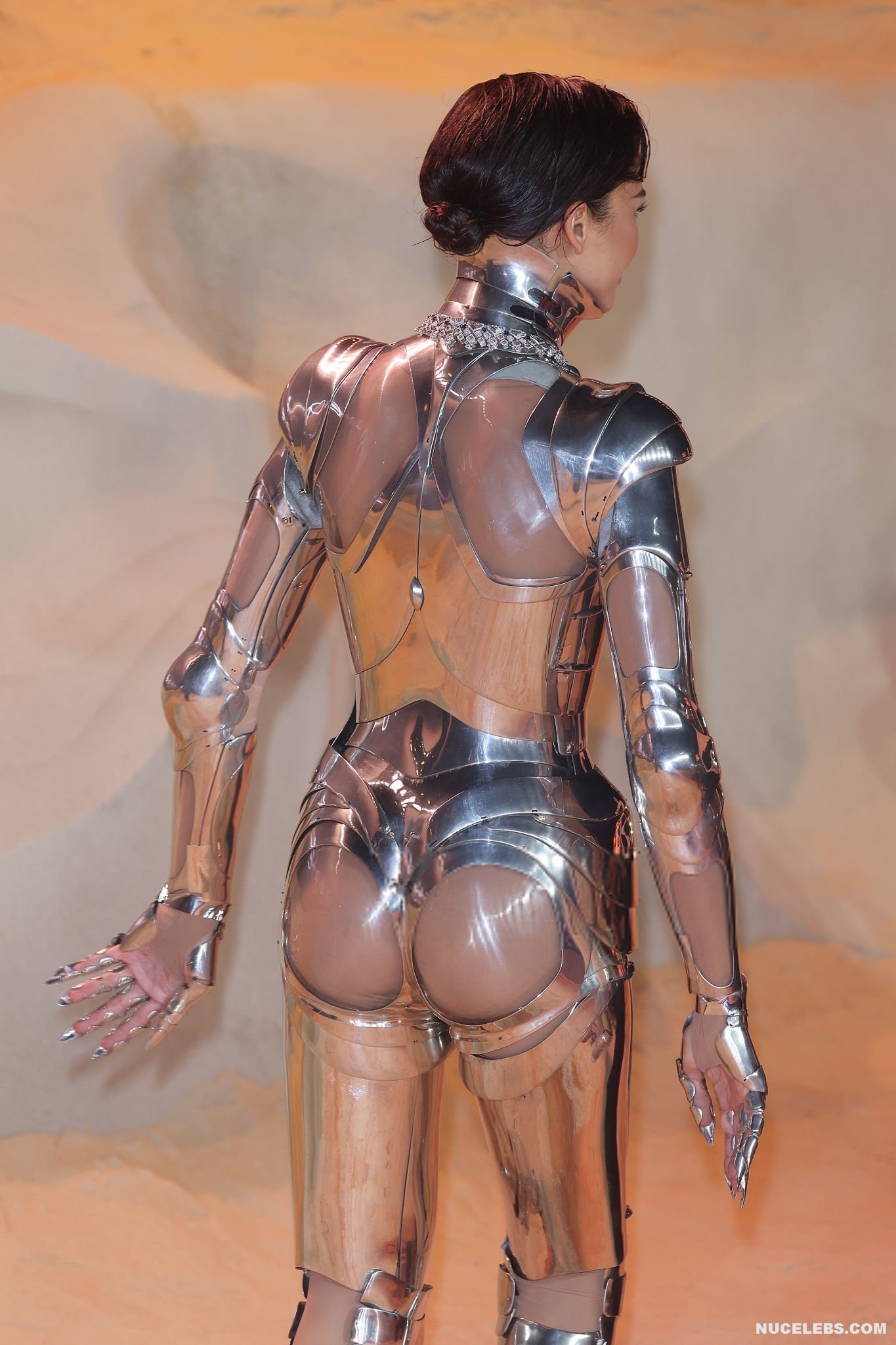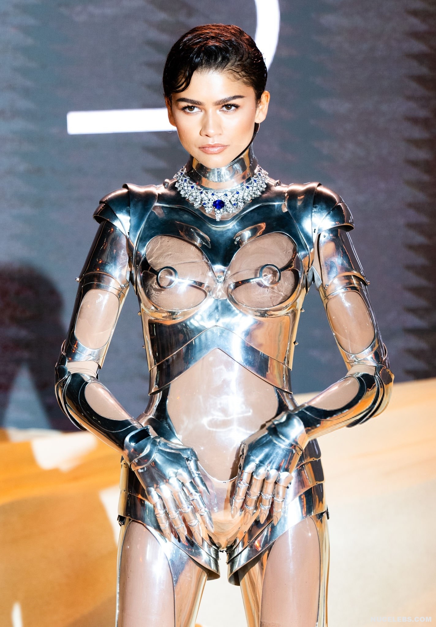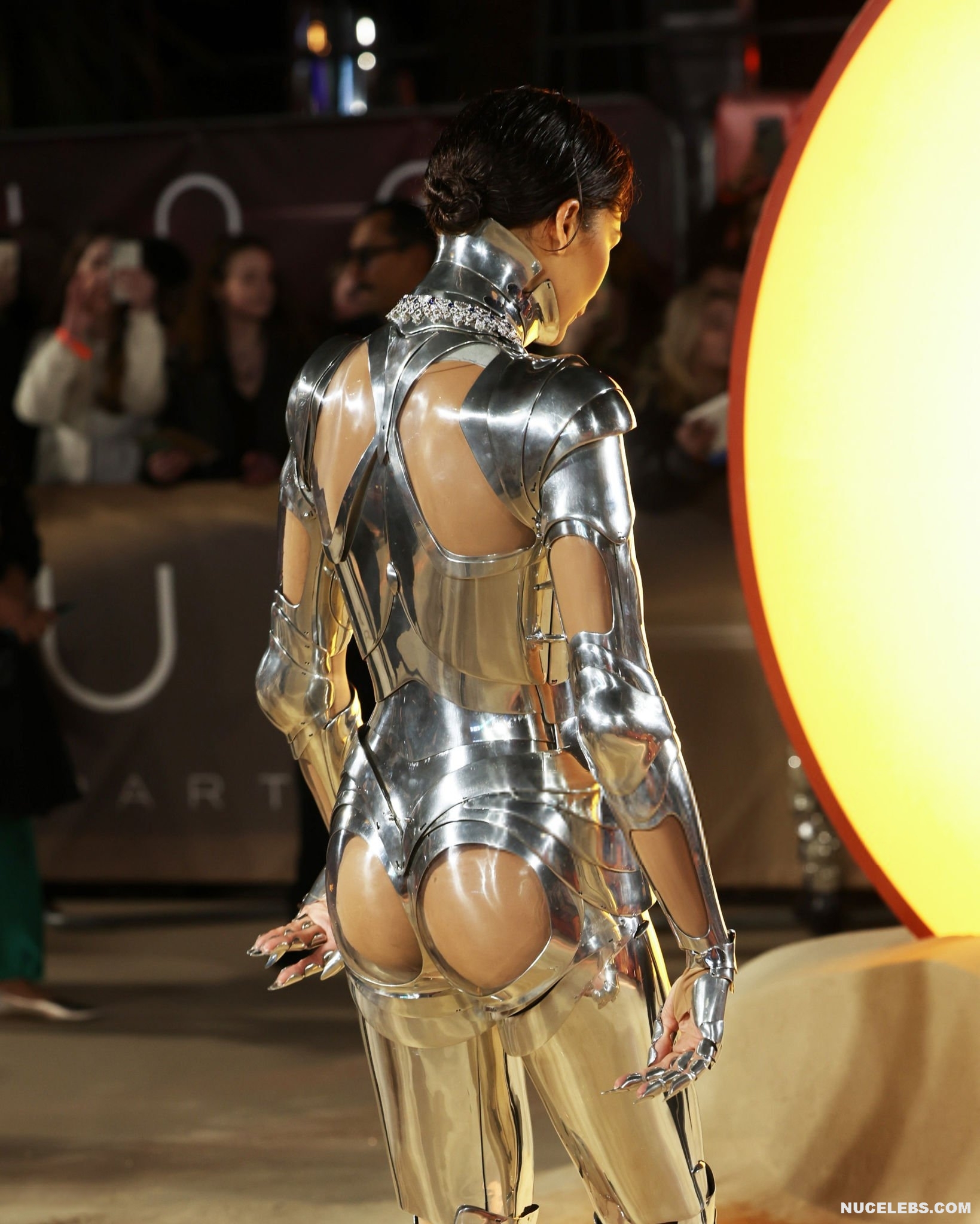 I wonder what part of Zendaya Coleman’s body will first fall into your eyes when you see her in a steel suit? I bet you’ll be drooling as you look at her amazing booty peeking out through the sheer panels of the suit. Of course, you can’t ignore Zendaya Coleman’s almost nude breasts. They also showed seductively through the transparent panels of the suit, and only her nipples were hidden from the public’s view.