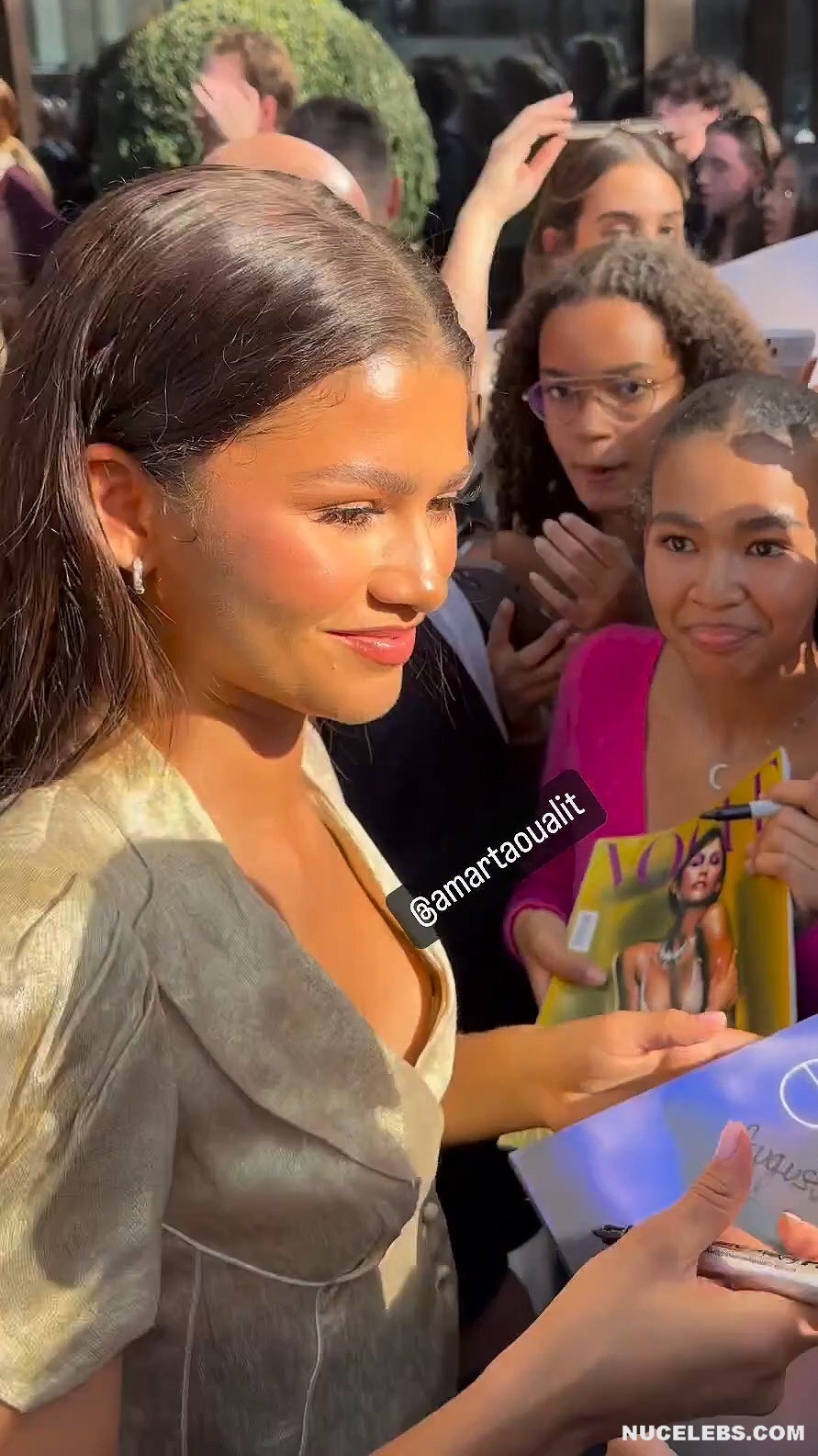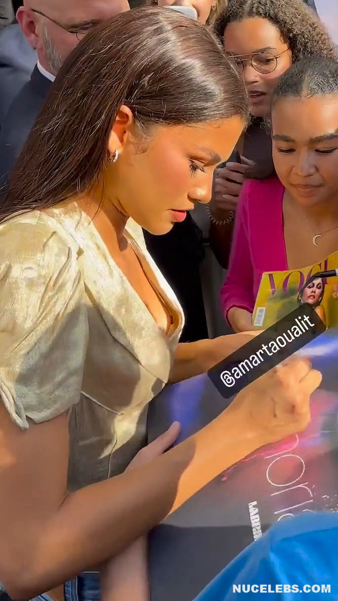 The natural beauty and inherent charisma of Zendaya are the core elements of her allure. When this American actress was signing autographs for her fans, the paparazzi managed to take some pretty hot unexpected photos. So, Zendaya was wearing a white blouse with a low neckline. And just at that moment, when she was writing something on a notepad for her fan, the neckline of her blouse moved a little to the side… Zendaya’s brown nipple appeared from under her blouse for a moment and it was so sexy!