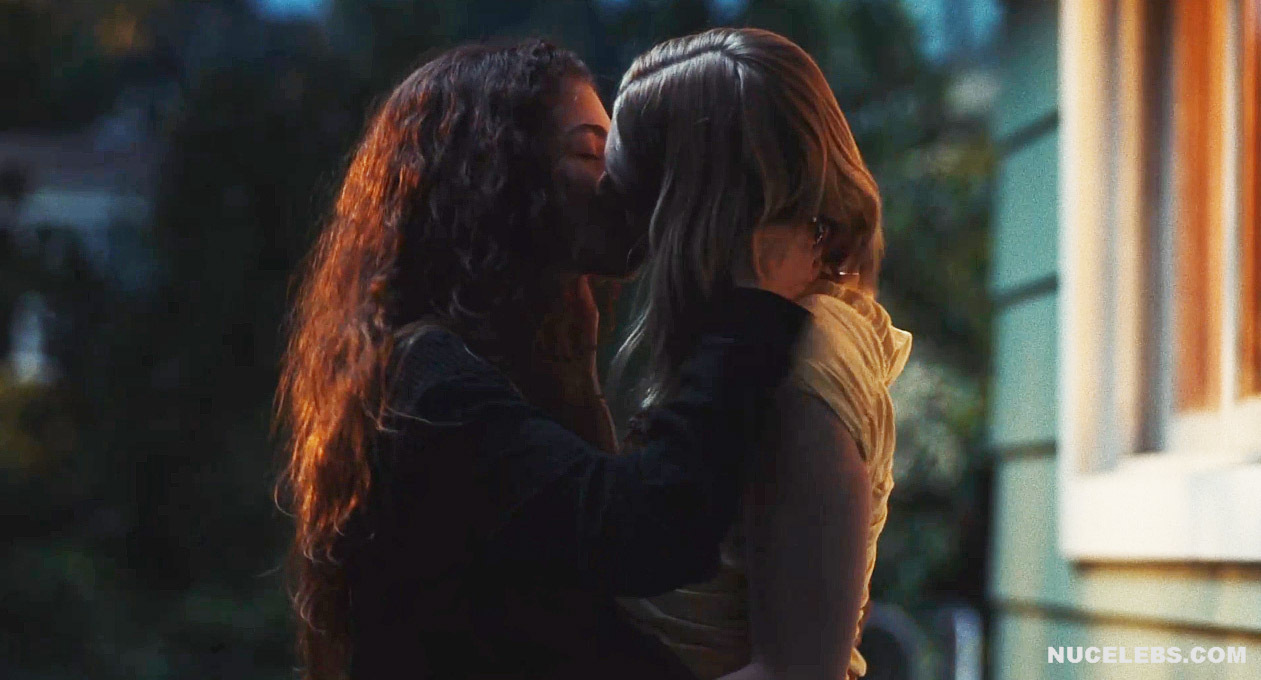 Some scenes from the series Euphoria will make your heart beat faster. Especially given Zendaya’s excellent acting. For example, in one of the scenes, this American actress sat unashamedly on the toilet with her pants down. Well, this is a great chance to get a better look at Zendaya’s nude booty! And in another scene, this star will drive you crazy with her passionate lesbian kisses with a girl. By the way, Zendaya will not only kiss the girl, but also caress her nude pussy with her fingers.