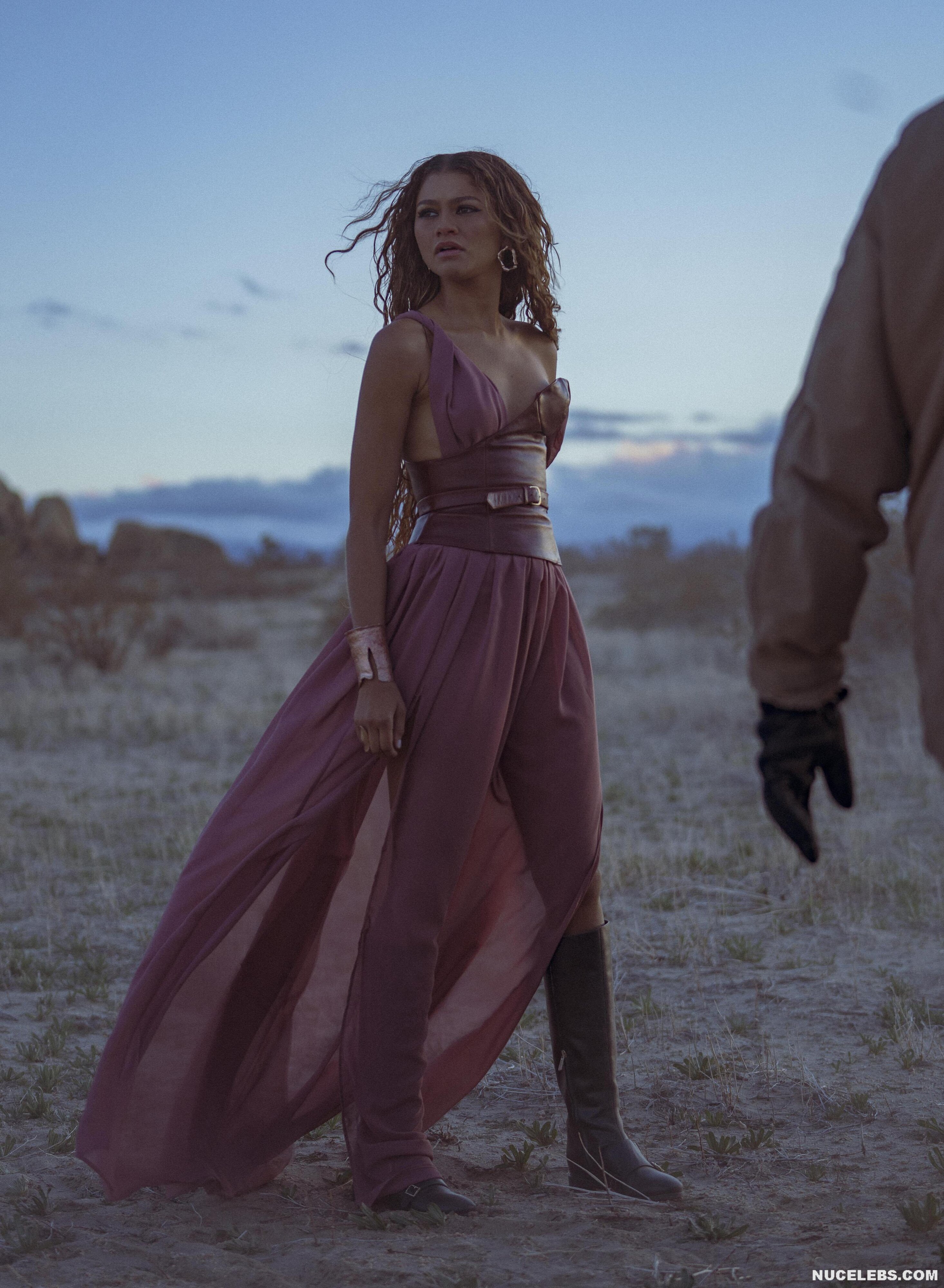 You will be delighted with Zendaya nude boobies! This celebrity recently impressed us with her slender legs and amazing cleavage while posing in a short white jumpsuit with black polka dots. But another look of hers, where she appeared in front of the camera in a transparent outfit, will drive you crazy! The front of her loose blue dress was made of latex and perfectly hugged Zendaya’s nude amazing titties!