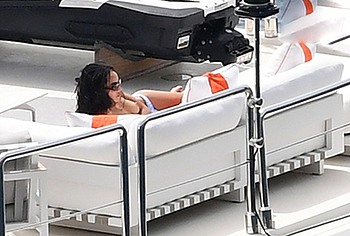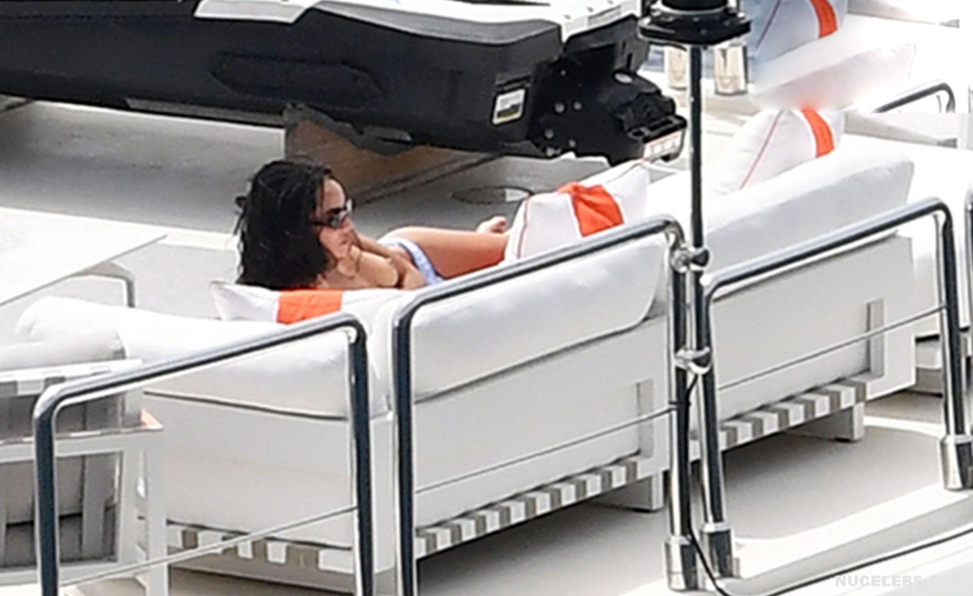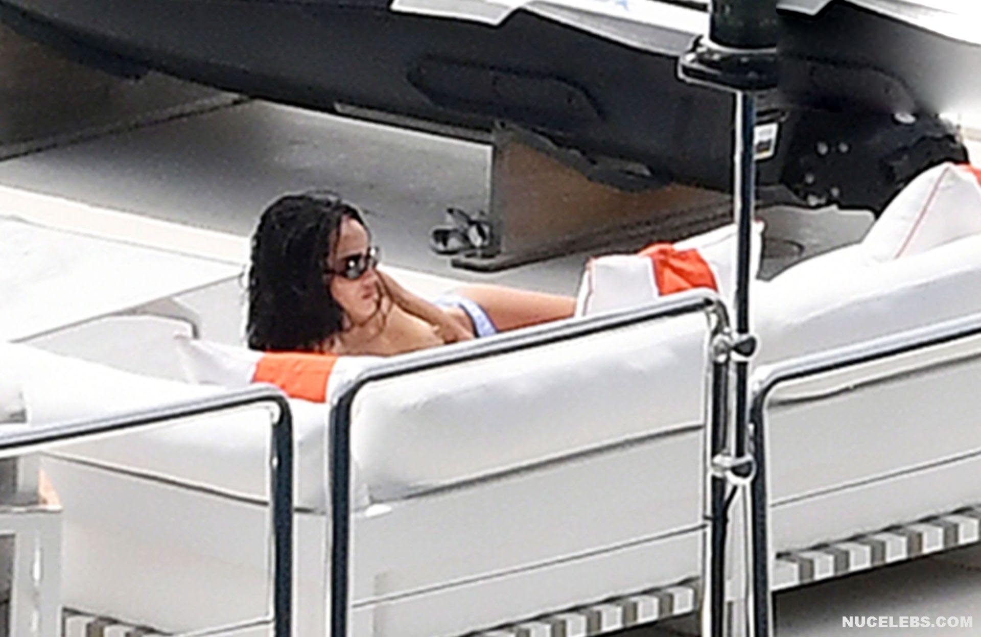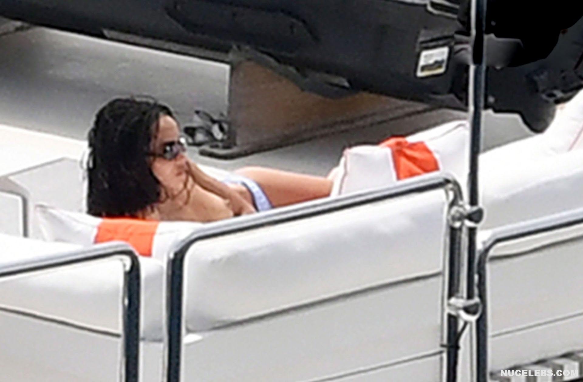 Zoe Kravitz decided to sunbathe topless on a yacht, and this made the paparazzi who followed her very happy. Well, it’s worth noting that this 33-year-old actress’ bare tits looked very juicy and seductive. You will dream about feeling her awesome boobs with hard nipples, which she showed while sunbathing on a white sofa.