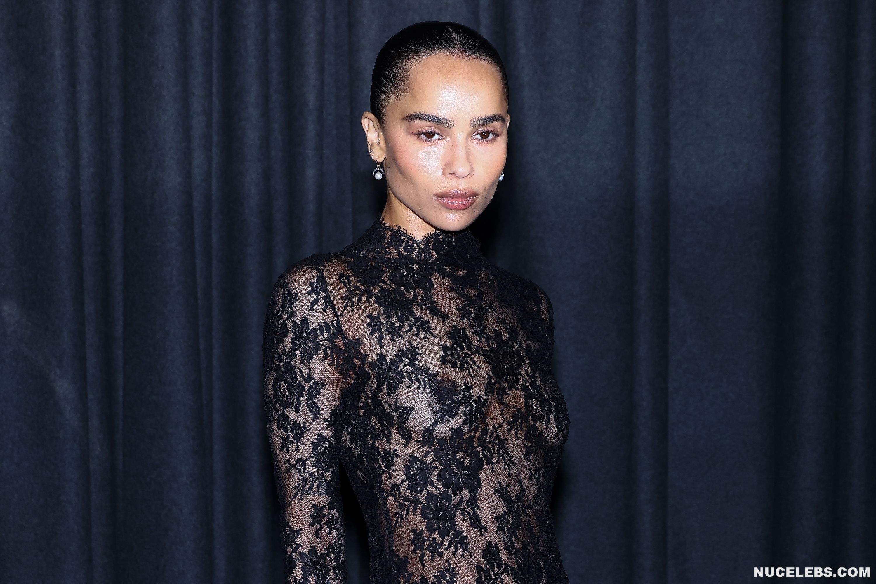 Zoe Kravitz is a total icon, known for her bold style and incredible talent! Here are some topless photos of this 35-year-old beauty on a mattress. Although there you will hardly see her tits – they show more of her cool buttocks, which were covered only by a narrow strip of black thong, because she was lying on her stomach. But Zoe Kravitz nude breasts can often be seen through her outfits. This star loves to push the boundaries in fashion, so her outfits are not only tight, but also completely transparent. A great opportunity for the public to admire Zoe Kravitz nude boobies, isn’t it?