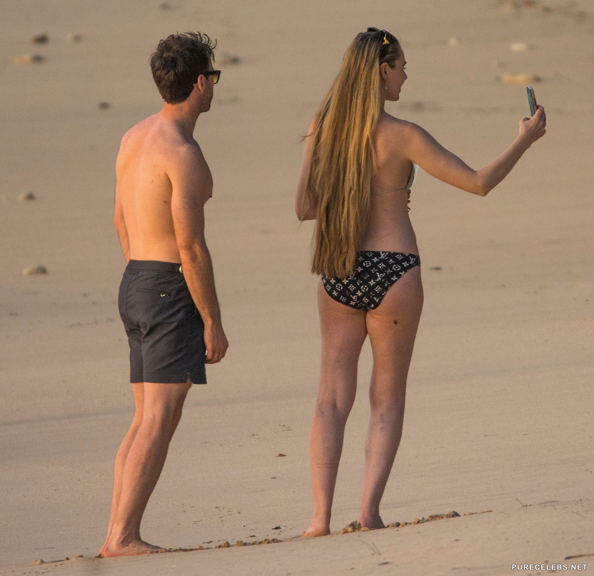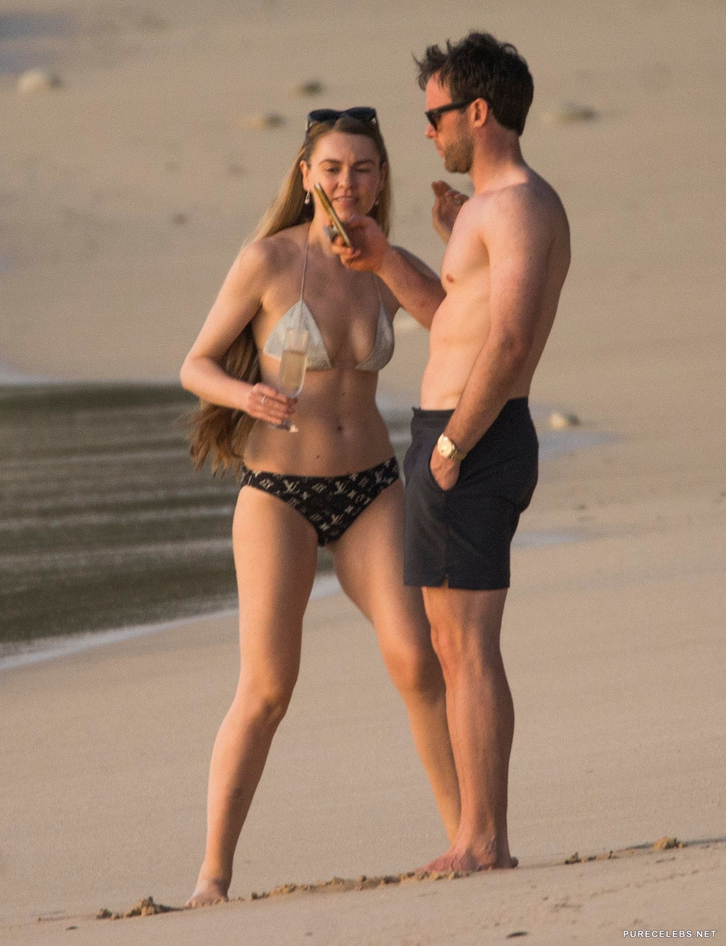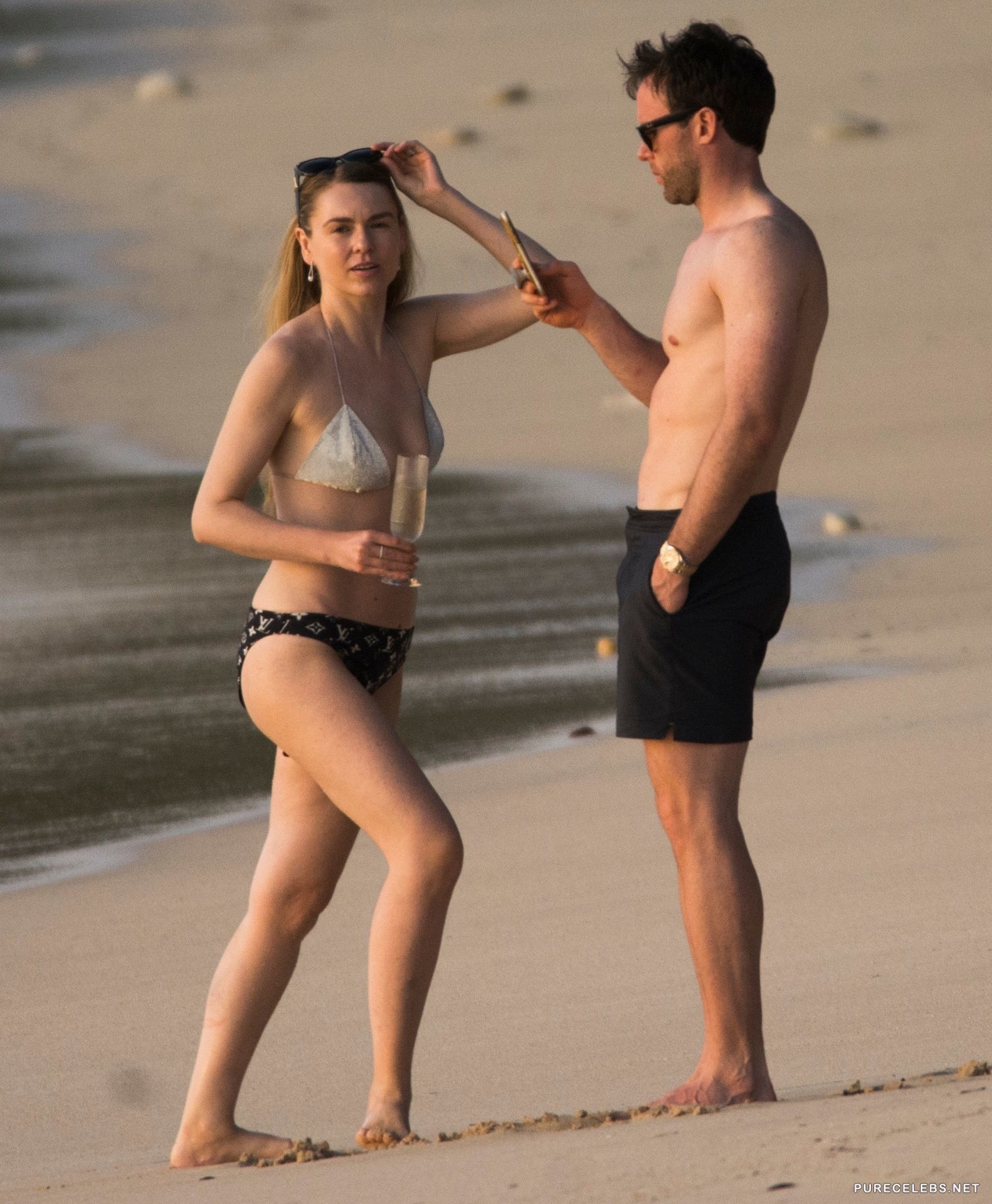 Northern Irish television presenter Zoe Salmon was spotted while relaxing on the beach and immediately photographed by paparazzi. The celebrity was dressed in a small bikini that perfectly demonstrated her slim figure. Her awesome tits were ready to slip out of a small white bra at any moment. And in black panties with a print, her ass looked just incredibly seductive! You definitely can not resist this hot beauty!